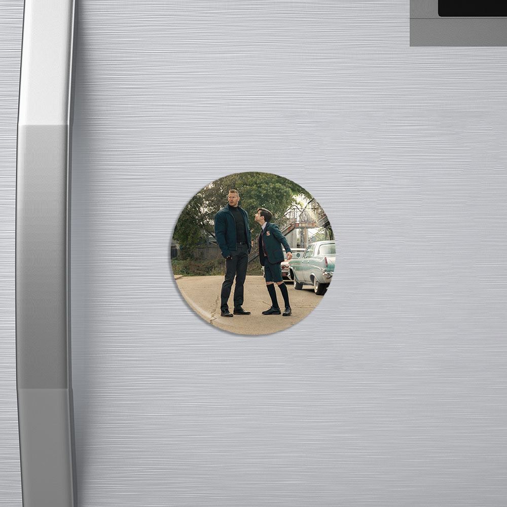 مگنت شماره پنج و لوثر سریال آکادمی آمبرلا The Umberella Academy خندالو با روکش سلفون مات مخملی ضدخش و قطعه پشتی فلزی تولید شده است که آهنربای اتمی بکار برده شده در محصول، بصورت مخفی تعبیه شده ودیده نمی شود. ضمن اینکه گیرایی بسیار بالایی داشته و به هیچ عنوان از روی یخچال نمی افتد.