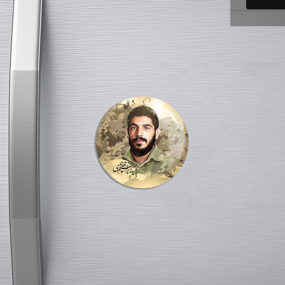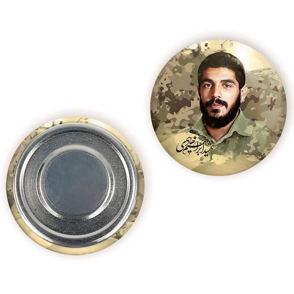 مگنت شهید ابراهیم هادی خندالو با روکش سلفون مات مخملی ضدخش و قطعه پشتی فلزی تولید شده است که آهنربای اتمی بکار برده شده در محصول، بصورت مخفی تعبیه شده ودیده نمی شود. ضمن اینکه گیرایی بسیار بالایی داشته و به هیچ عنوان از روی یخچال نمی افتد.