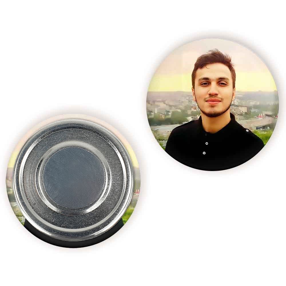 مگنت شهید جهاد مغنیه خندالو با روکش سلفون مات مخملی ضدخش و قطعه پشتی فلزی تولید شده است که آهنربای اتمی بکار برده شده در محصول، بصورت مخفی تعبیه شده ودیده نمی شود. ضمن اینکه گیرایی بسیار بالایی داشته و به هیچ عنوان از روی یخچال نمی افتد.