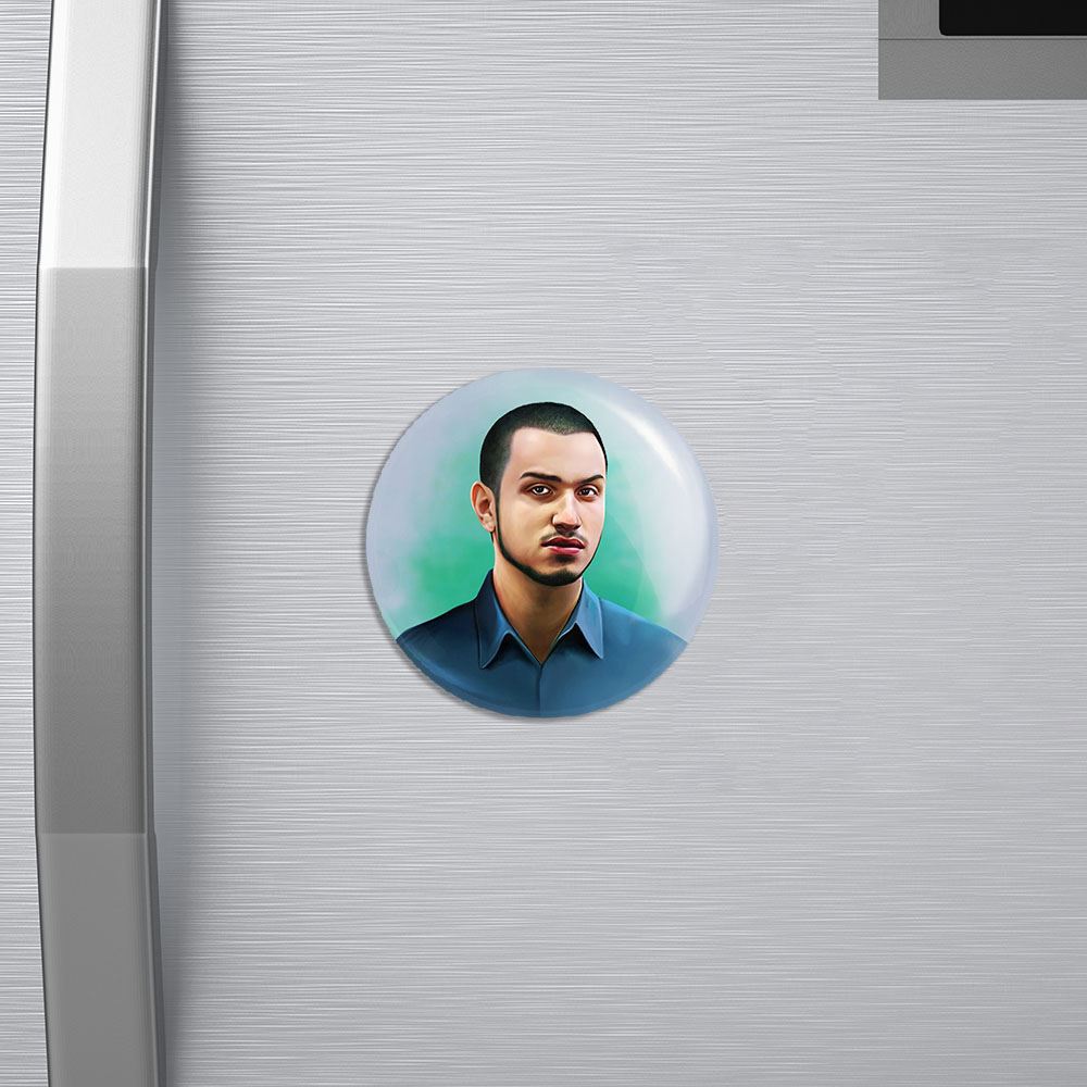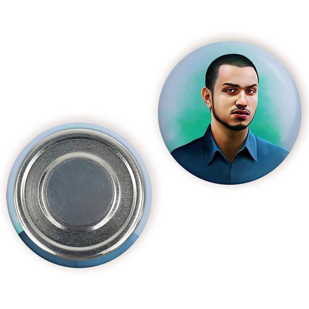 مگنت شهید جهاد مغنیه خندالو با روکش سلفون مات مخملی ضدخش و قطعه پشتی فلزی تولید شده است که آهنربای اتمی بکار برده شده در محصول، بصورت مخفی تعبیه شده ودیده نمی شود. ضمن اینکه گیرایی بسیار بالایی داشته و به هیچ عنوان از روی یخچال نمی افتد.