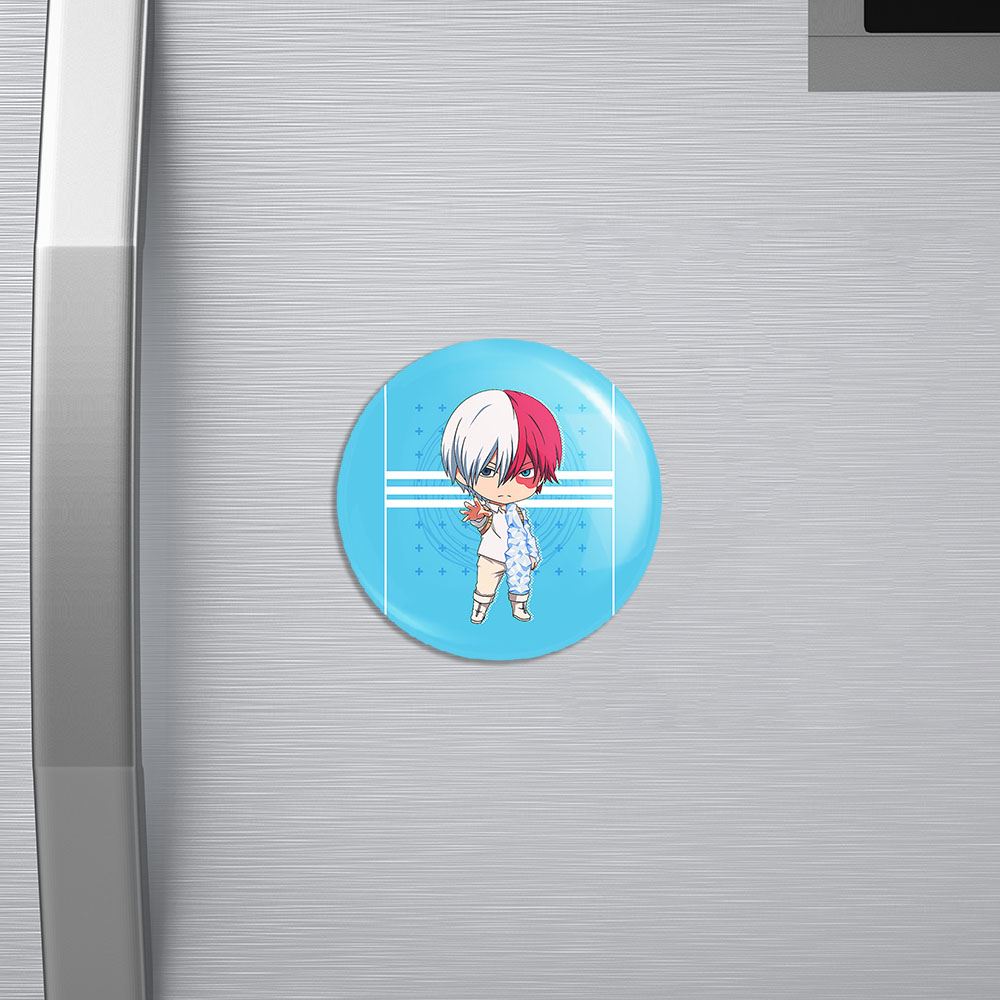 مگنت شوتو انیمه آکادمی قهرمان من خندالو با روکش سلفون مات مخملی ضدخش و قطعه پشتی فلزی تولید شده است که آهنربای اتمی بکار برده شده در محصول، بصورت مخفی تعبیه شده ودیده نمی شود. ضمن اینکه گیرایی بسیار بالایی داشته و به هیچ عنوان از روی یخچال نمی افتد.