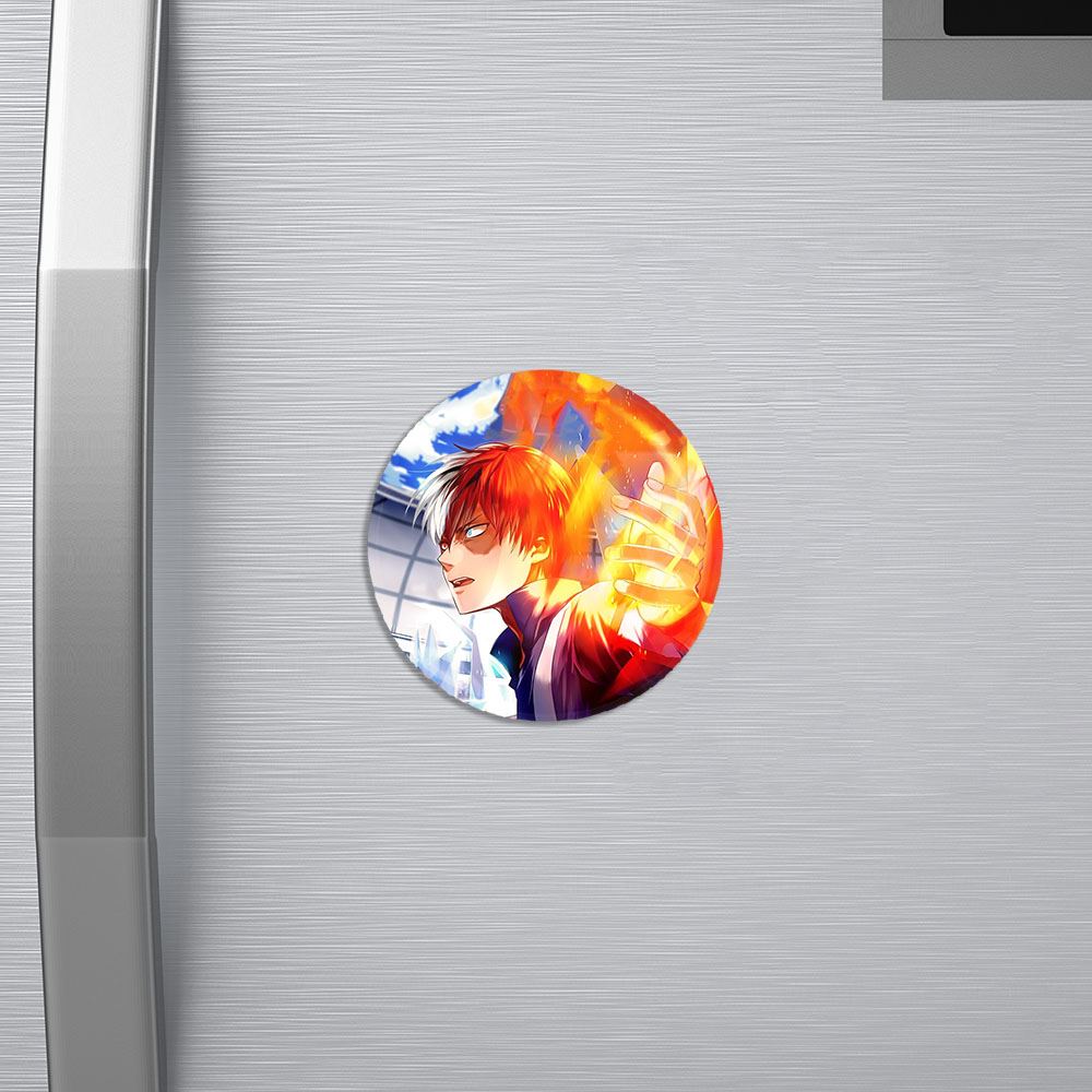 مگنت شوتو تودوروکی انیمه آکادمی قهرمان من خندالو با روکش سلفون مات مخملی ضدخش و قطعه پشتی فلزی تولید شده است که آهنربای اتمی بکار برده شده در محصول، بصورت مخفی تعبیه شده ودیده نمی شود. ضمن اینکه گیرایی بسیار بالایی داشته و به هیچ عنوان از روی یخچال نمی افتد.