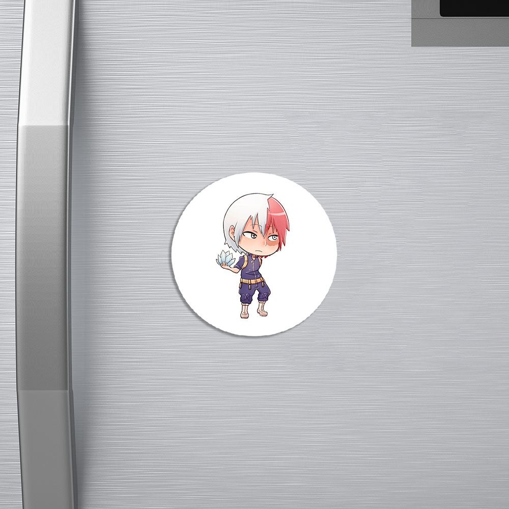 مگنت شوتو تودوروکی انیمه قهرمان من خندالو با روکش سلفون مات مخملی ضدخش و قطعه پشتی فلزی تولید شده است که آهنربای اتمی بکار برده شده در محصول، بصورت مخفی تعبیه شده ودیده نمی شود. ضمن اینکه گیرایی بسیار بالایی داشته و به هیچ عنوان از روی یخچال نمی افتد.
