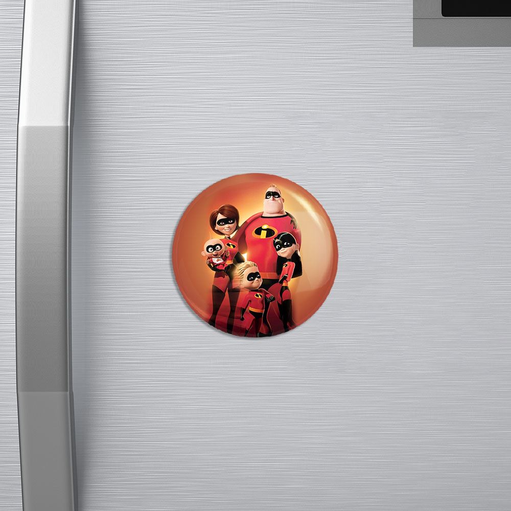 مگنت شگفت انگیزان The Incredibles خندالو با روکش سلفون مات مخملی ضدخش و قطعه پشتی فلزی تولید شده است که آهنربای اتمی بکار برده شده در محصول، بصورت مخفی تعبیه شده ودیده نمی شود. ضمن اینکه گیرایی بسیار بالایی داشته و به هیچ عنوان از روی یخچال نمی افتد.