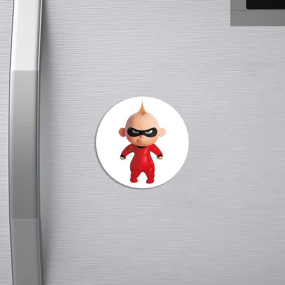 مگنت شگفت انگیزان The Incredibles خندالو با روکش سلفون مات مخملی ضدخش و قطعه پشتی فلزی تولید شده است که آهنربای اتمی بکار برده شده در محصول، بصورت مخفی تعبیه شده ودیده نمی شود. ضمن اینکه گیرایی بسیار بالایی داشته و به هیچ عنوان از روی یخچال نمی افتد.
