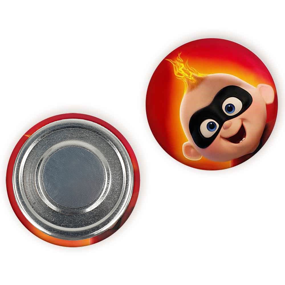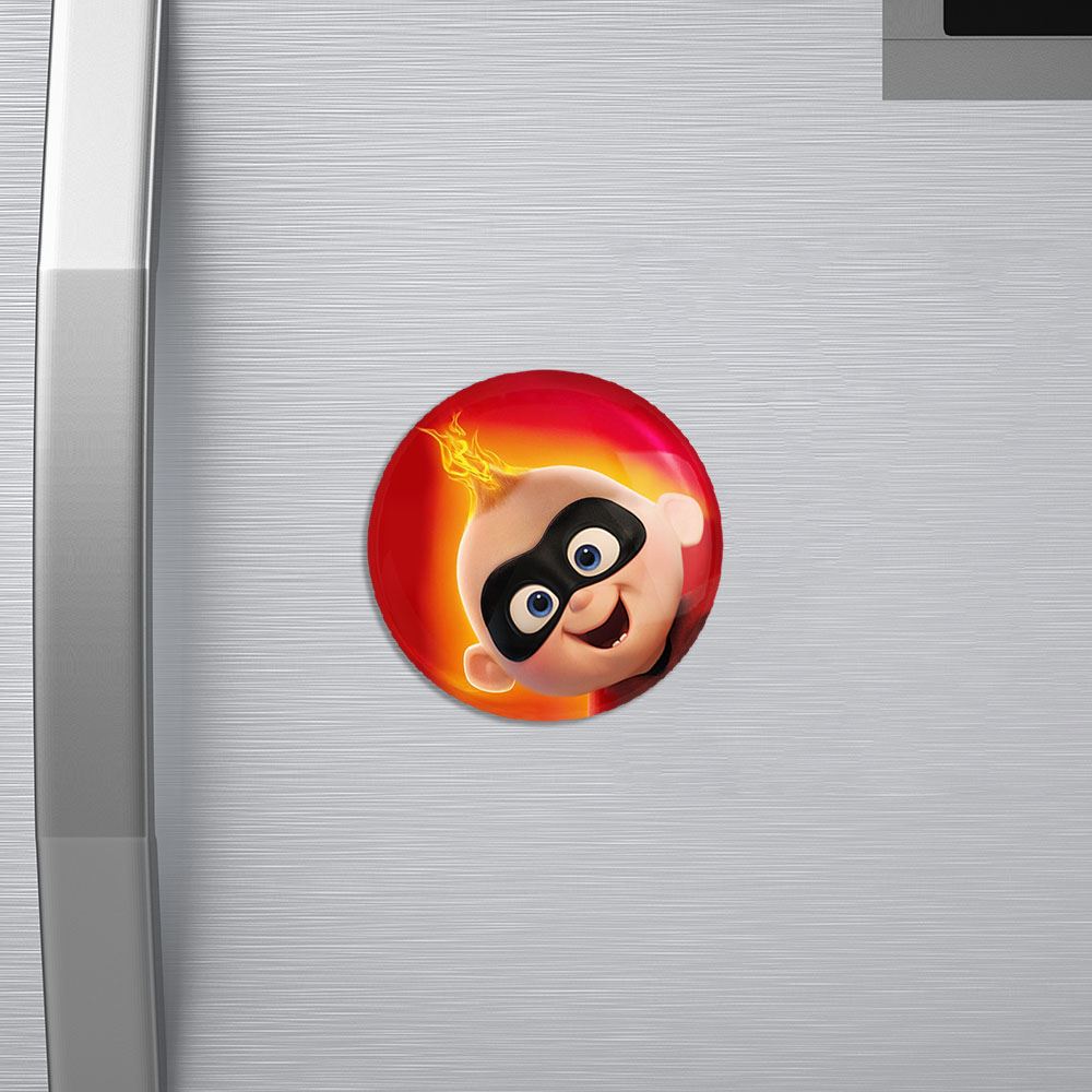 مگنت شگفت انگیزان The Incredibles خندالو با روکش سلفون مات مخملی ضدخش و قطعه پشتی فلزی تولید شده است که آهنربای اتمی بکار برده شده در محصول، بصورت مخفی تعبیه شده ودیده نمی شود. ضمن اینکه گیرایی بسیار بالایی داشته و به هیچ عنوان از روی یخچال نمی افتد.