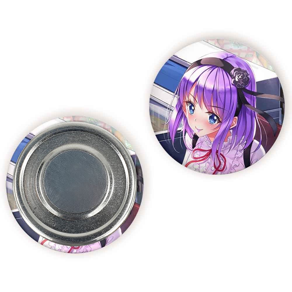 مگنت شیداره انیمه داگاشی کاشی Dagashi Kashi خندالو با روکش سلفون مات مخملی ضدخش و قطعه پشتی فلزی تولید شده است که آهنربای اتمی بکار برده شده در محصول، بصورت مخفی تعبیه شده ودیده نمی شود. ضمن اینکه گیرایی بسیار بالایی داشته و به هیچ عنوان از روی یخچال نمی افتد.