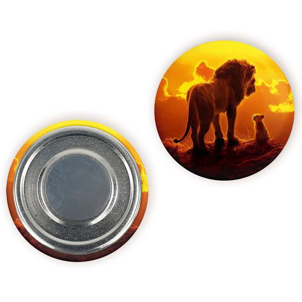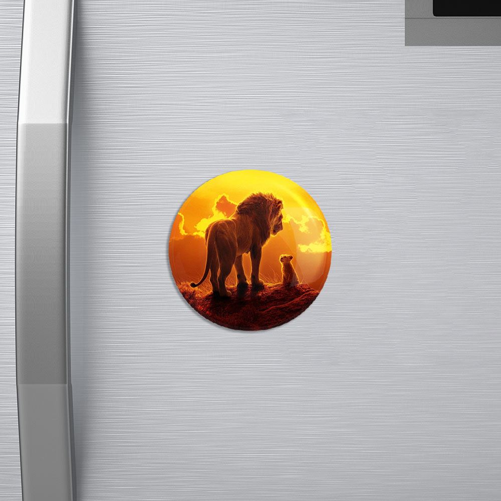 مگنت شیرشاه Lion King خندالو با روکش سلفون مات مخملی ضدخش و قطعه پشتی فلزی تولید شده است که آهنربای اتمی بکار برده شده در محصول، بصورت مخفی تعبیه شده ودیده نمی شود. ضمن اینکه گیرایی بسیار بالایی داشته و به هیچ عنوان از روی یخچال نمی افتد.