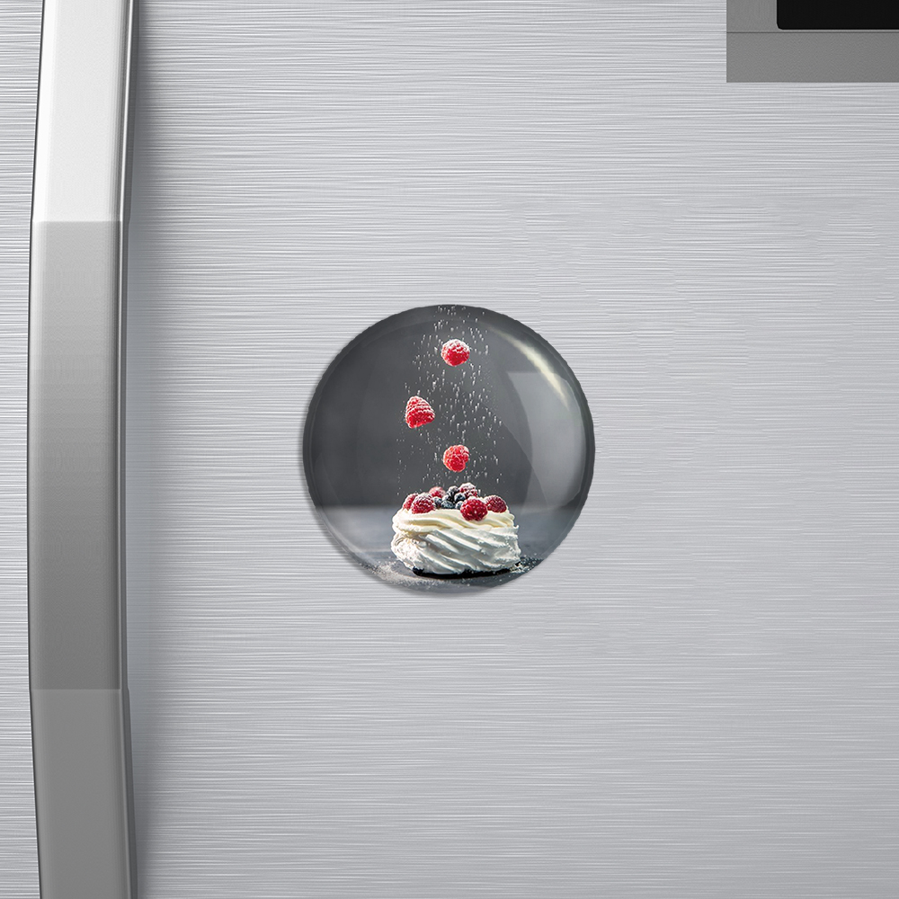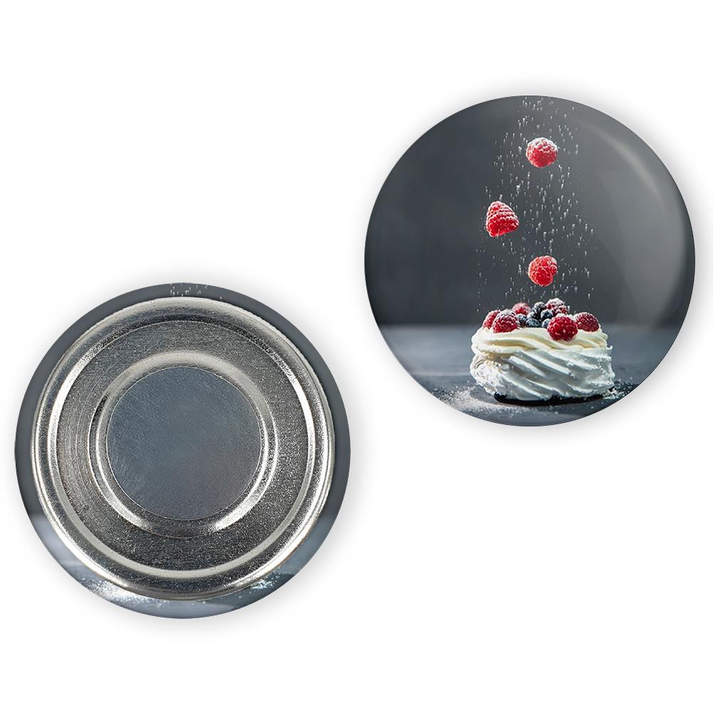 مگنت شیرینی جات خندالو با روکش سلفون مات مخملی ضدخش و قطعه پشتی فلزی تولید شده است که آهنربای اتمی بکار برده شده در محصول، بصورت مخفی تعبیه شده ودیده نمی شود. ضمن اینکه گیرایی بسیار بالایی داشته و به هیچ عنوان از روی یخچال نمی افتد.