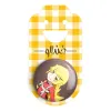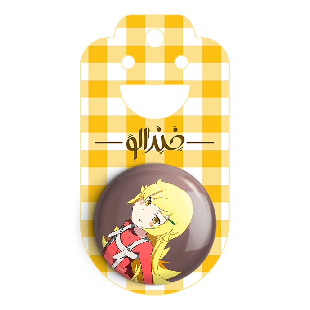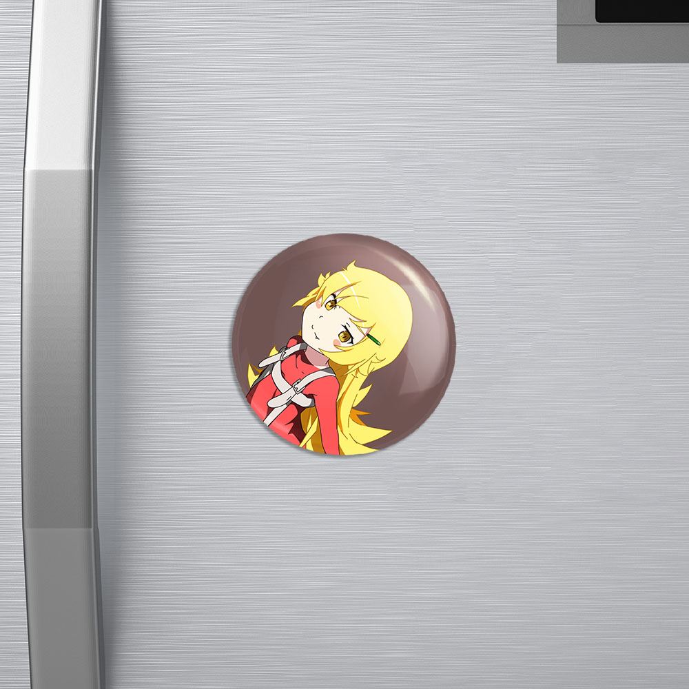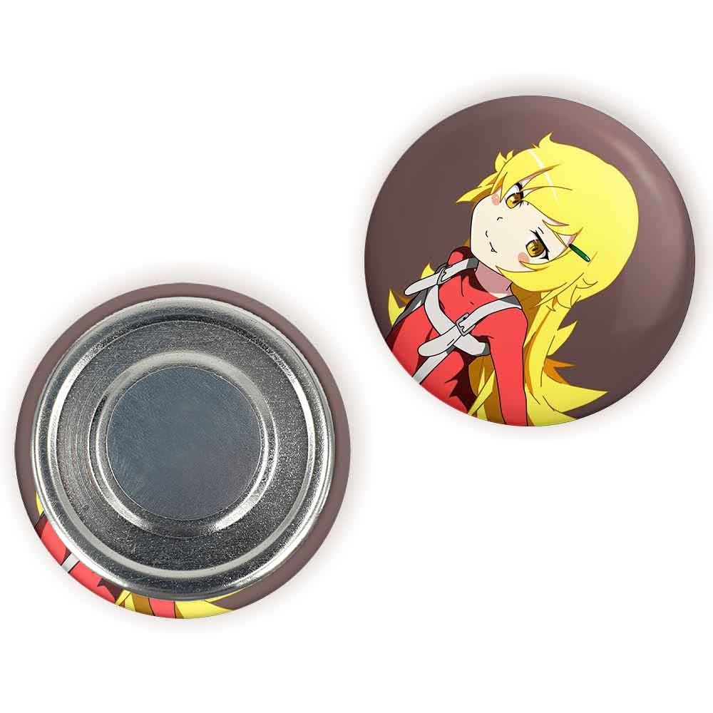 مگنت شینوبو اوشینو انیمه مونوگاتاری خندالو با روکش سلفون مات مخملی ضدخش و قطعه پشتی فلزی تولید شده است که آهنربای اتمی بکار برده شده در محصول، بصورت مخفی تعبیه شده ودیده نمی شود. ضمن اینکه گیرایی بسیار بالایی داشته و به هیچ عنوان از روی یخچال نمی افتد.