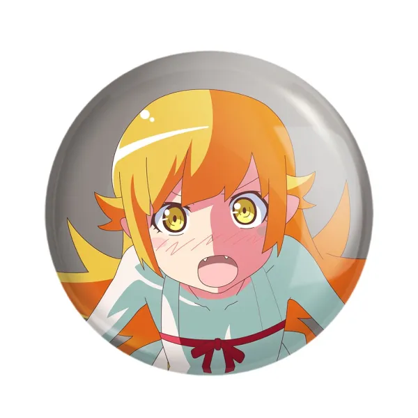 مگنت شینوبو اوشینو انیمه مونوگاتاری خندالو با روکش سلفون مات مخملی ضدخش و قطعه پشتی فلزی تولید شده است که آهنربای اتمی بکار برده شده در محصول، بصورت مخفی تعبیه شده ودیده نمی شود. ضمن اینکه گیرایی بسیار بالایی داشته و به هیچ عنوان از روی یخچال نمی افتد.