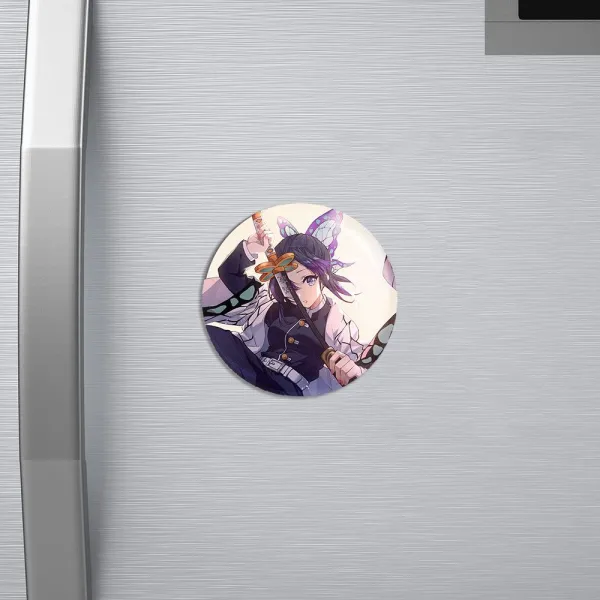 مگنت شینوبو کاکوچو انیمه شیطان کش خندالو با روکش سلفون مات مخملی ضدخش و قطعه پشتی فلزی تولید شده است که آهنربای اتمی بکار برده شده در محصول، بصورت مخفی تعبیه شده ودیده نمی شود. ضمن اینکه گیرایی بسیار بالایی داشته و به هیچ عنوان از روی یخچال نمی افتد.