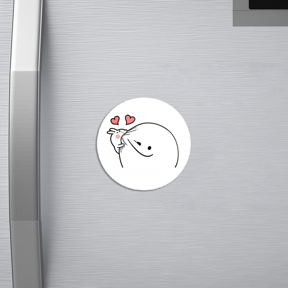 مگنت عاشقانه خندالو با روکش سلفون مات مخملی ضدخش و قطعه پشتی فلزی تولید شده است که آهنربای اتمی بکار برده شده در محصول، بصورت مخفی تعبیه شده ودیده نمی شود. ضمن اینکه گیرایی بسیار بالایی داشته و به هیچ عنوان از روی یخچال نمی افتد.