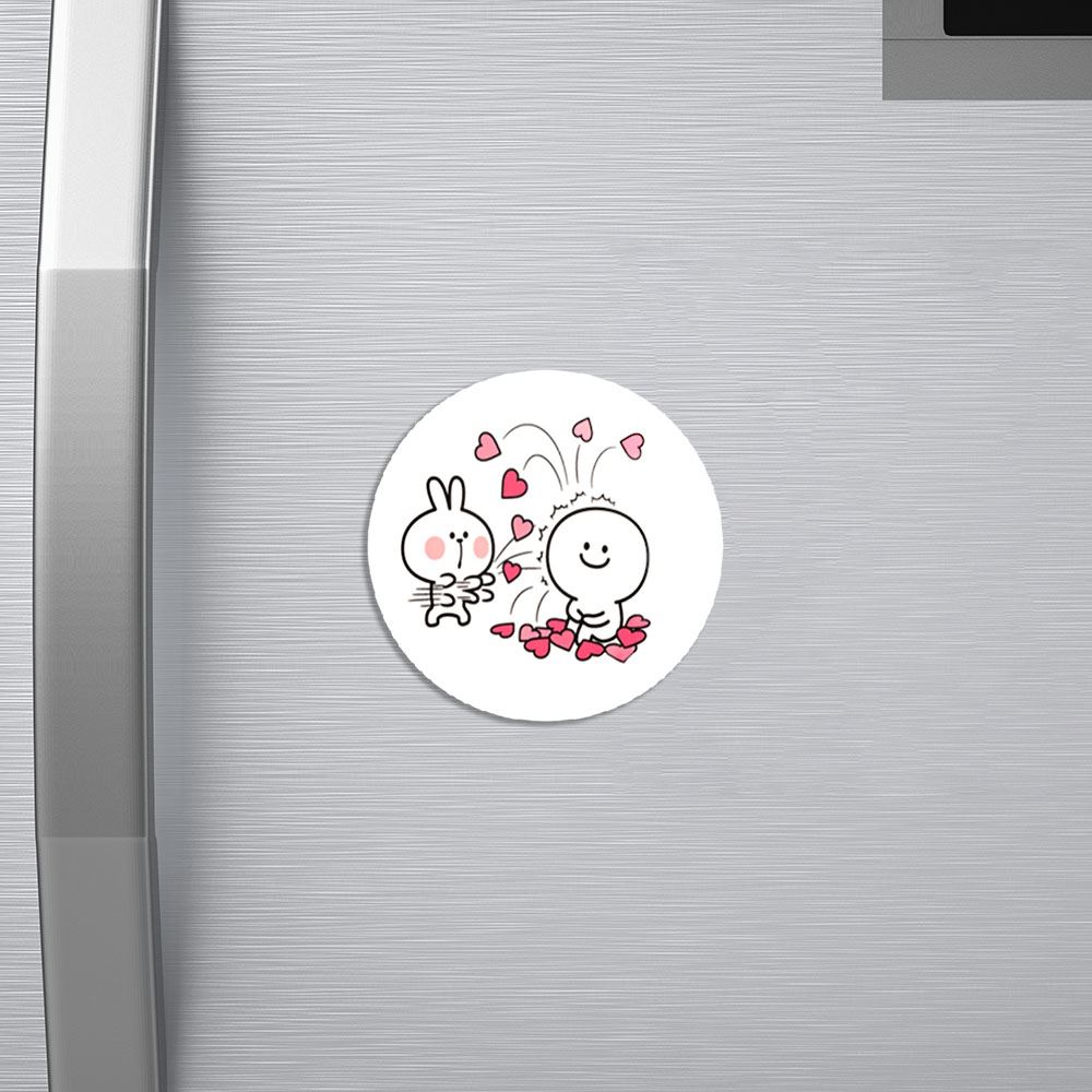 مگنت عاشقانه خندالو با روکش سلفون مات مخملی ضدخش و قطعه پشتی فلزی تولید شده است که آهنربای اتمی بکار برده شده در محصول، بصورت مخفی تعبیه شده ودیده نمی شود. ضمن اینکه گیرایی بسیار بالایی داشته و به هیچ عنوان از روی یخچال نمی افتد.