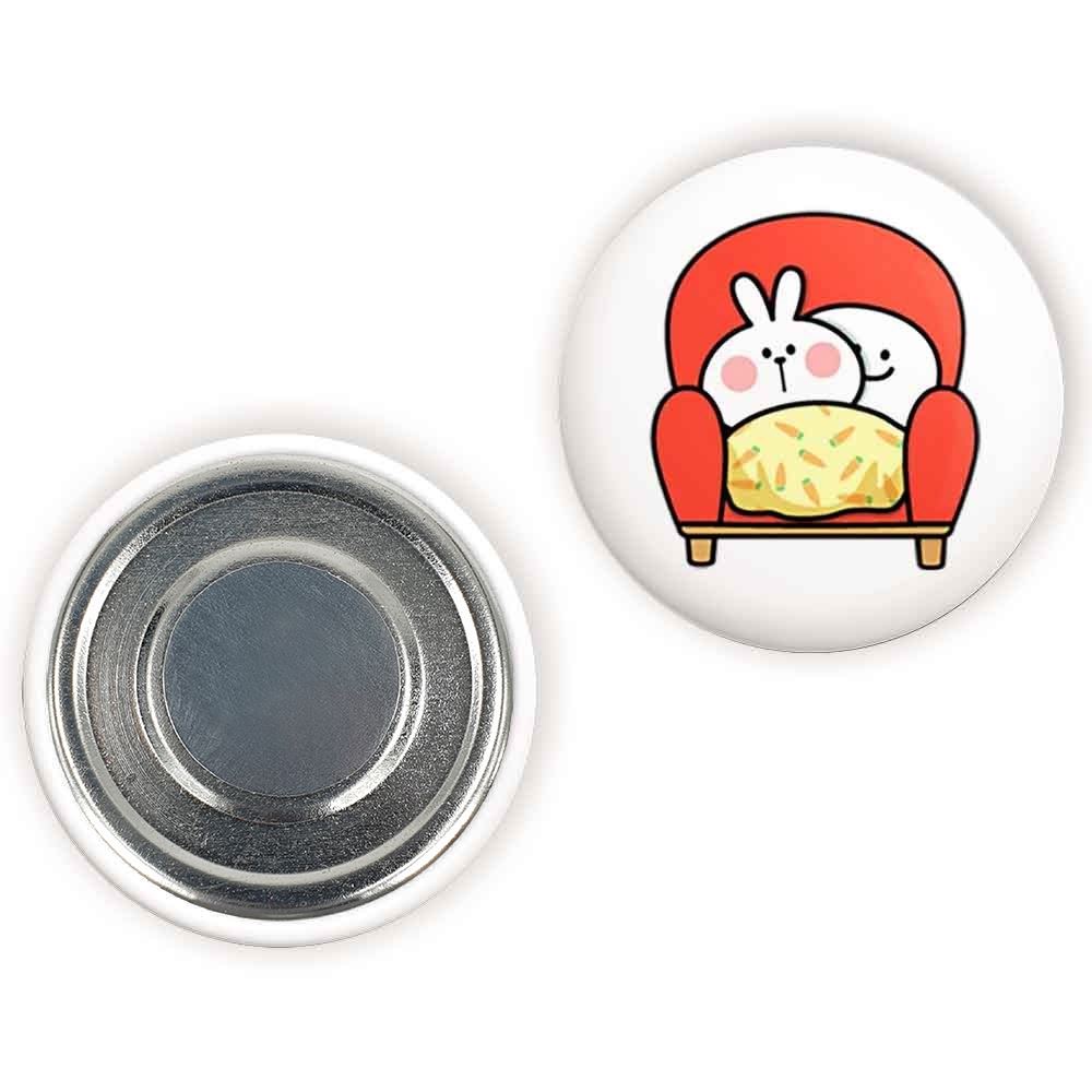 مگنت عاشقانه خندالو با روکش سلفون مات مخملی ضدخش و قطعه پشتی فلزی تولید شده است که آهنربای اتمی بکار برده شده در محصول، بصورت مخفی تعبیه شده ودیده نمی شود. ضمن اینکه گیرایی بسیار بالایی داشته و به هیچ عنوان از روی یخچال نمی افتد.