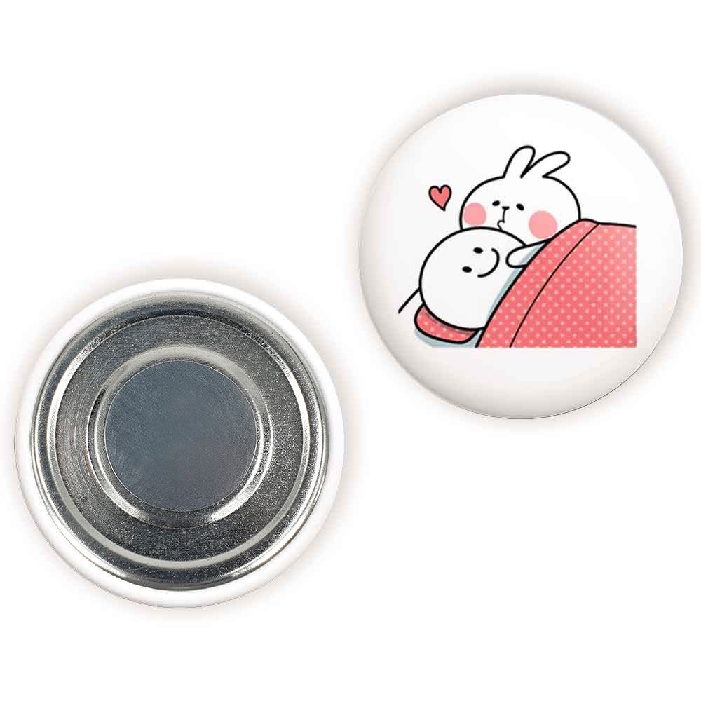 مگنت عاشقانه خندالو با روکش سلفون مات مخملی ضدخش و قطعه پشتی فلزی تولید شده است که آهنربای اتمی بکار برده شده در محصول، بصورت مخفی تعبیه شده ودیده نمی شود. ضمن اینکه گیرایی بسیار بالایی داشته و به هیچ عنوان از روی یخچال نمی افتد.
