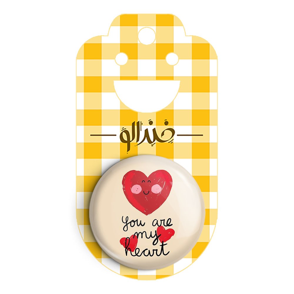مگنت عاشقانه خندالو با روکش سلفون مات مخملی ضدخش و قطعه پشتی فلزی تولید شده است که آهنربای اتمی بکار برده شده در محصول، بصورت مخفی تعبیه شده ودیده نمی شود. ضمن اینکه گیرایی بسیار بالایی داشته و به هیچ عنوان از روی یخچال نمی افتد.