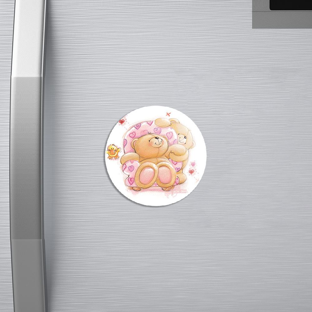مگنت عاشقانه خندالو با روکش سلفون مات مخملی ضدخش و قطعه پشتی فلزی تولید شده است که آهنربای اتمی بکار برده شده در محصول، بصورت مخفی تعبیه شده ودیده نمی شود. ضمن اینکه گیرایی بسیار بالایی داشته و به هیچ عنوان از روی یخچال نمی افتد.