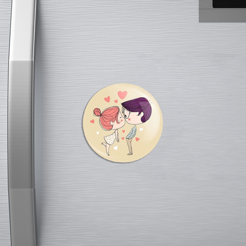 مگنت عاشقانه خندالو با روکش سلفون مات مخملی ضدخش و قطعه پشتی فلزی تولید شده است که آهنربای اتمی بکار برده شده در محصول، بصورت مخفی تعبیه شده ودیده نمی شود. ضمن اینکه گیرایی بسیار بالایی داشته و به هیچ عنوان از روی یخچال نمی افتد.