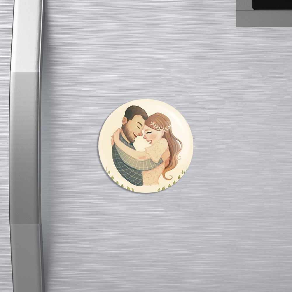 مگنت عاشقانه خندالو با روکش سلفون مات مخملی ضدخش و قطعه پشتی فلزی تولید شده است که آهنربای اتمی بکار برده شده در محصول، بصورت مخفی تعبیه شده ودیده نمی شود. ضمن اینکه گیرایی بسیار بالایی داشته و به هیچ عنوان از روی یخچال نمی افتد.