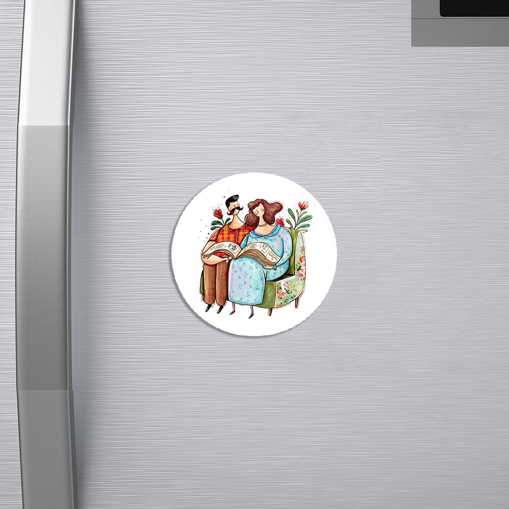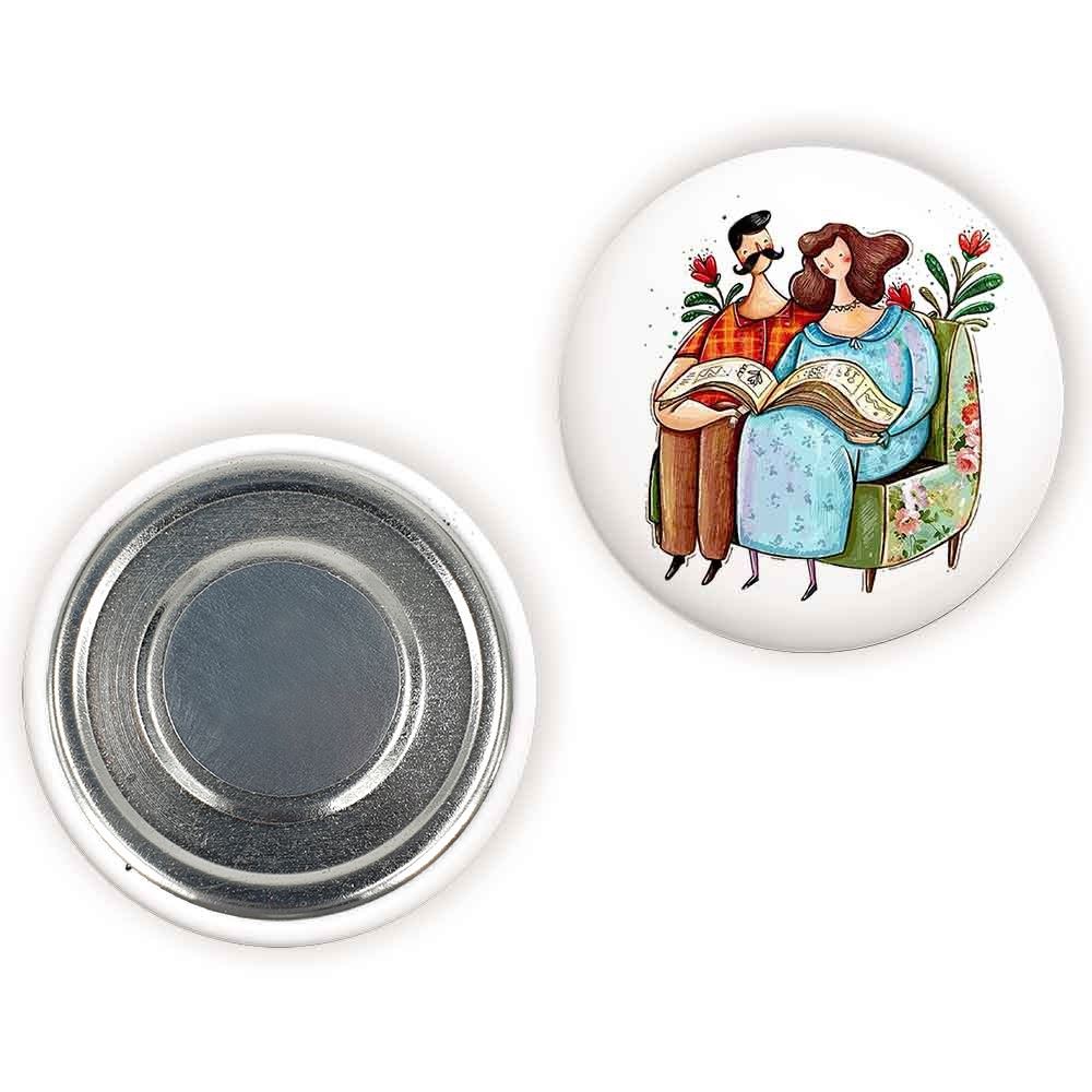 مگنت عاشقانه خندالو با روکش سلفون مات مخملی ضدخش و قطعه پشتی فلزی تولید شده است که آهنربای اتمی بکار برده شده در محصول، بصورت مخفی تعبیه شده ودیده نمی شود. ضمن اینکه گیرایی بسیار بالایی داشته و به هیچ عنوان از روی یخچال نمی افتد.
