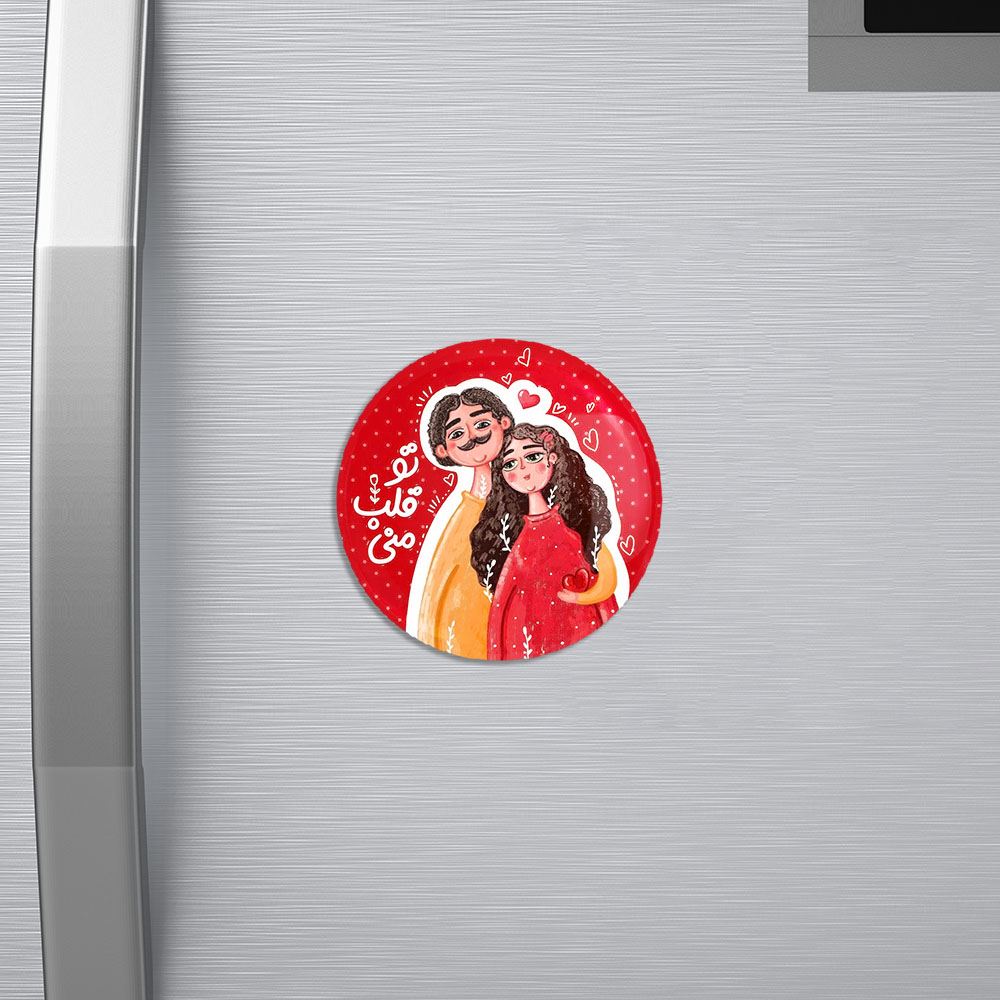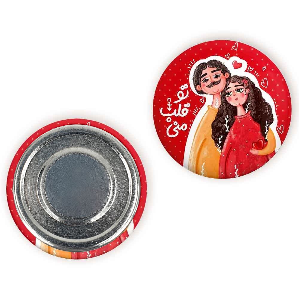 مگنت عاشقانه خندالو با روکش سلفون مات مخملی ضدخش و قطعه پشتی فلزی تولید شده است که آهنربای اتمی بکار برده شده در محصول، بصورت مخفی تعبیه شده ودیده نمی شود. ضمن اینکه گیرایی بسیار بالایی داشته و به هیچ عنوان از روی یخچال نمی افتد.