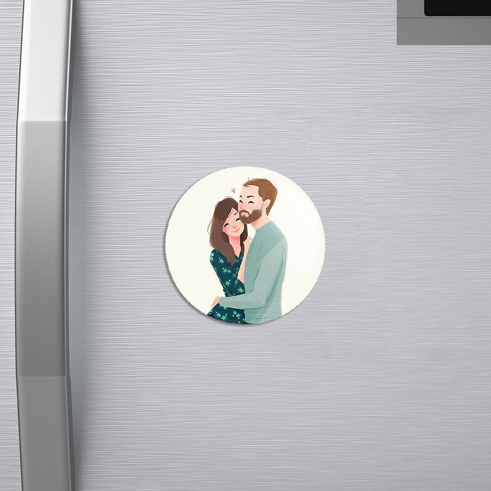 مگنت عاشقانه خندالو با روکش سلفون مات مخملی ضدخش و قطعه پشتی فلزی تولید شده است که آهنربای اتمی بکار برده شده در محصول، بصورت مخفی تعبیه شده ودیده نمی شود. ضمن اینکه گیرایی بسیار بالایی داشته و به هیچ عنوان از روی یخچال نمی افتد.