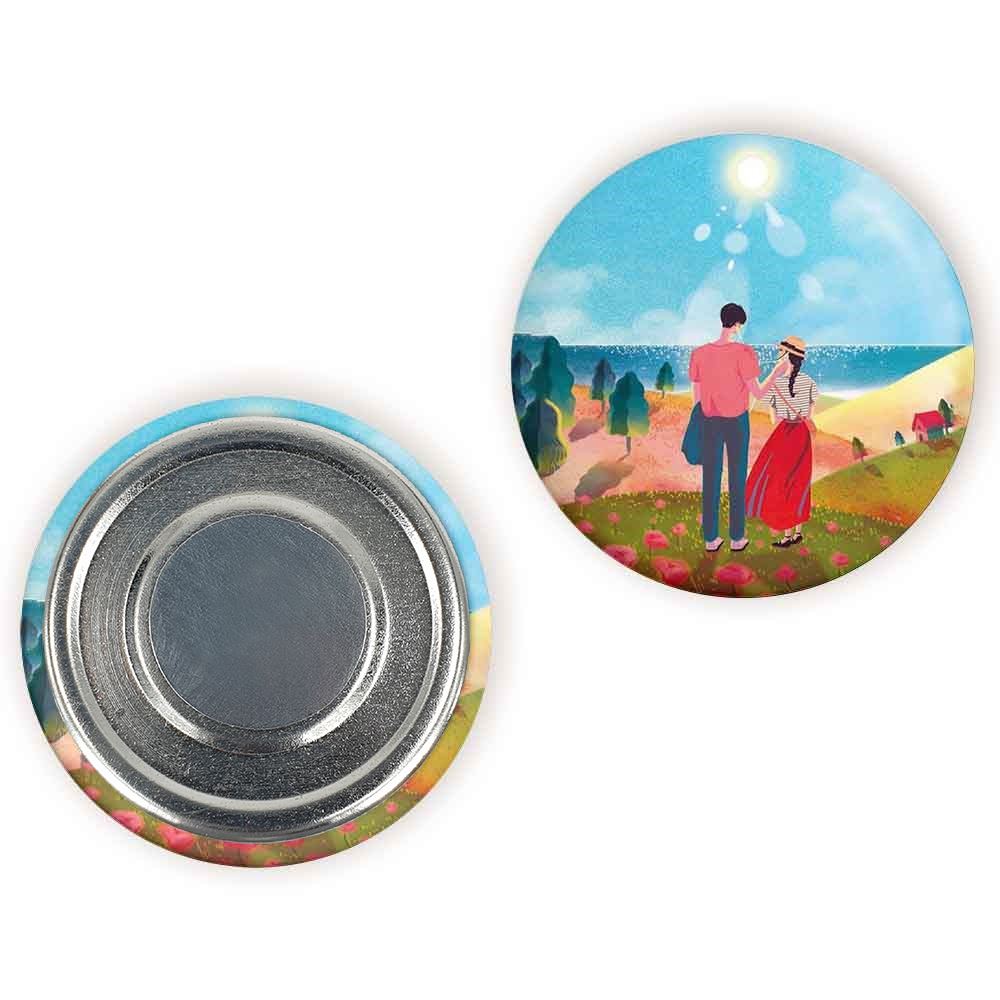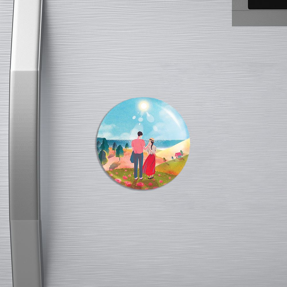 مگنت عاشقانه خندالو با روکش سلفون مات مخملی ضدخش و قطعه پشتی فلزی تولید شده است که آهنربای اتمی بکار برده شده در محصول، بصورت مخفی تعبیه شده ودیده نمی شود. ضمن اینکه گیرایی بسیار بالایی داشته و به هیچ عنوان از روی یخچال نمی افتد.