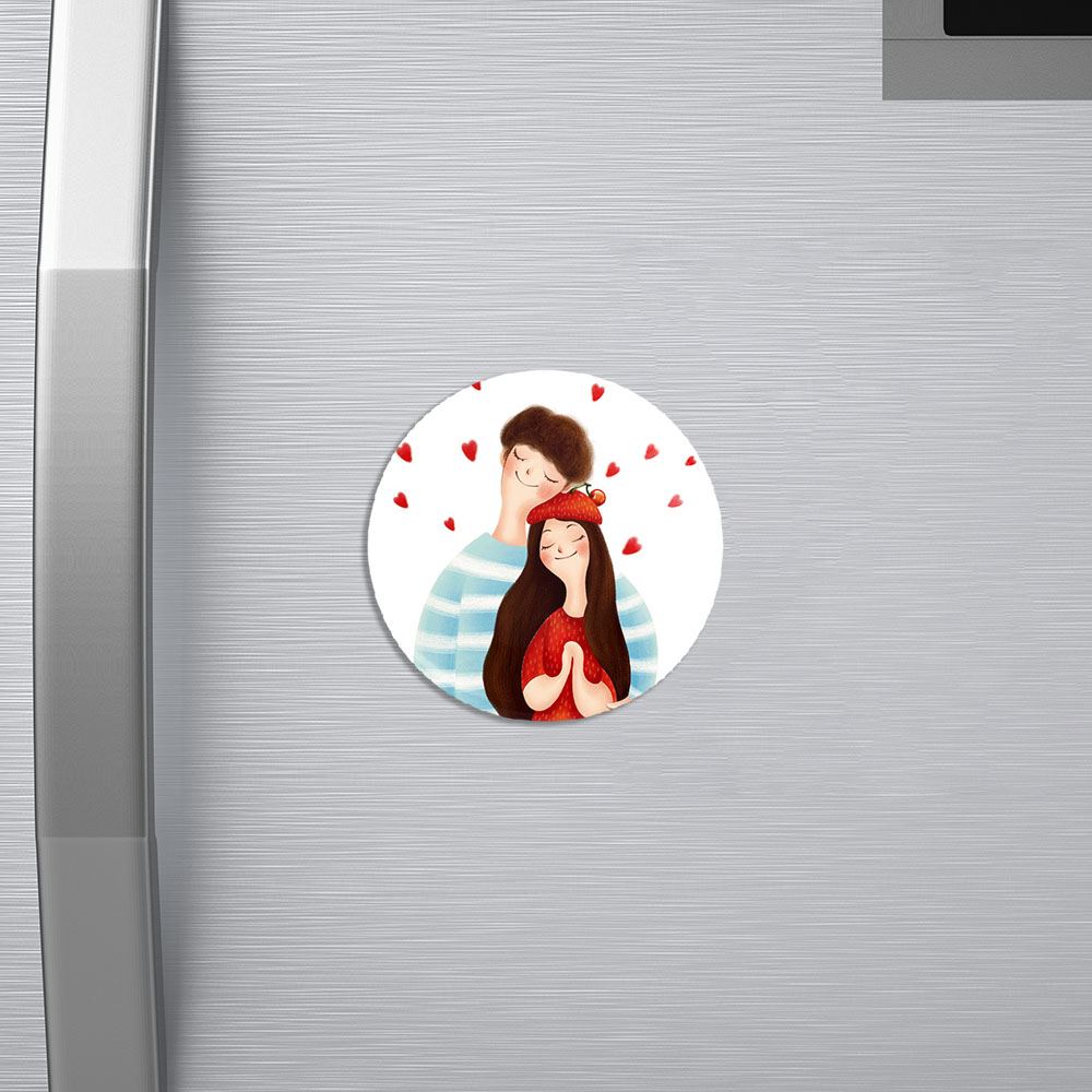 مگنت عاشقانه خندالو با روکش سلفون مات مخملی ضدخش و قطعه پشتی فلزی تولید شده است که آهنربای اتمی بکار برده شده در محصول، بصورت مخفی تعبیه شده ودیده نمی شود. ضمن اینکه گیرایی بسیار بالایی داشته و به هیچ عنوان از روی یخچال نمی افتد.