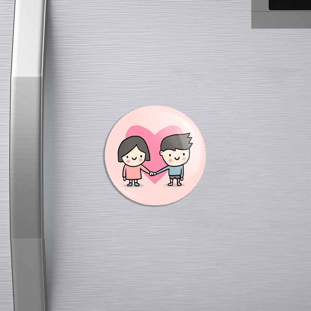 مگنت عاشقانه خندالو با روکش سلفون مات مخملی ضدخش و قطعه پشتی فلزی تولید شده است که آهنربای اتمی بکار برده شده در محصول، بصورت مخفی تعبیه شده ودیده نمی شود. ضمن اینکه گیرایی بسیار بالایی داشته و به هیچ عنوان از روی یخچال نمی افتد.