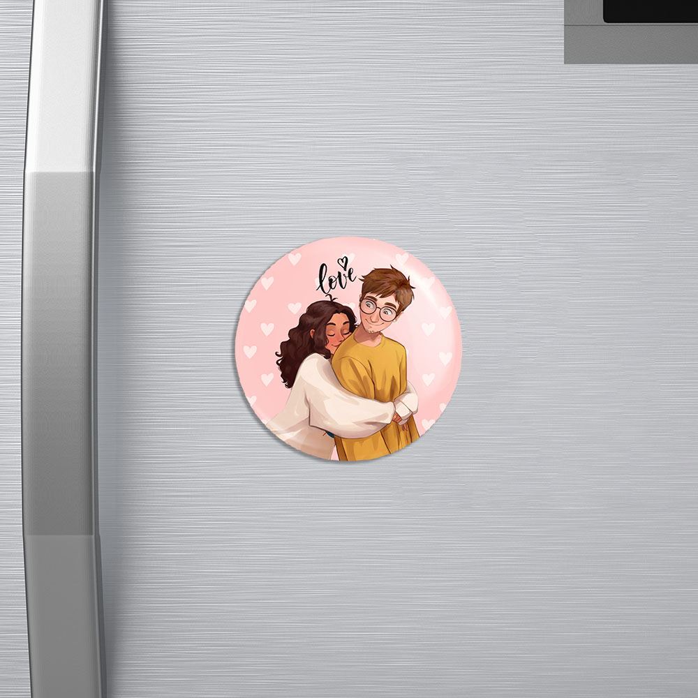 مگنت عاشقانه خندالو با روکش سلفون مات مخملی ضدخش و قطعه پشتی فلزی تولید شده است که آهنربای اتمی بکار برده شده در محصول، بصورت مخفی تعبیه شده ودیده نمی شود. ضمن اینکه گیرایی بسیار بالایی داشته و به هیچ عنوان از روی یخچال نمی افتد.
