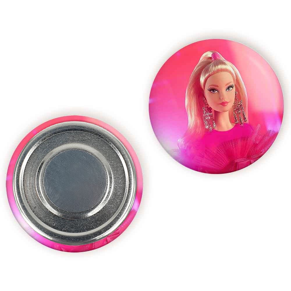 مگنت عروسک باربی خندالو با روکش سلفون مات مخملی ضدخش و قطعه پشتی فلزی تولید شده است که آهنربای اتمی بکار برده شده در محصول، بصورت مخفی تعبیه شده ودیده نمی شود. ضمن اینکه گیرایی بسیار بالایی داشته و به هیچ عنوان از روی یخچال نمی افتد.