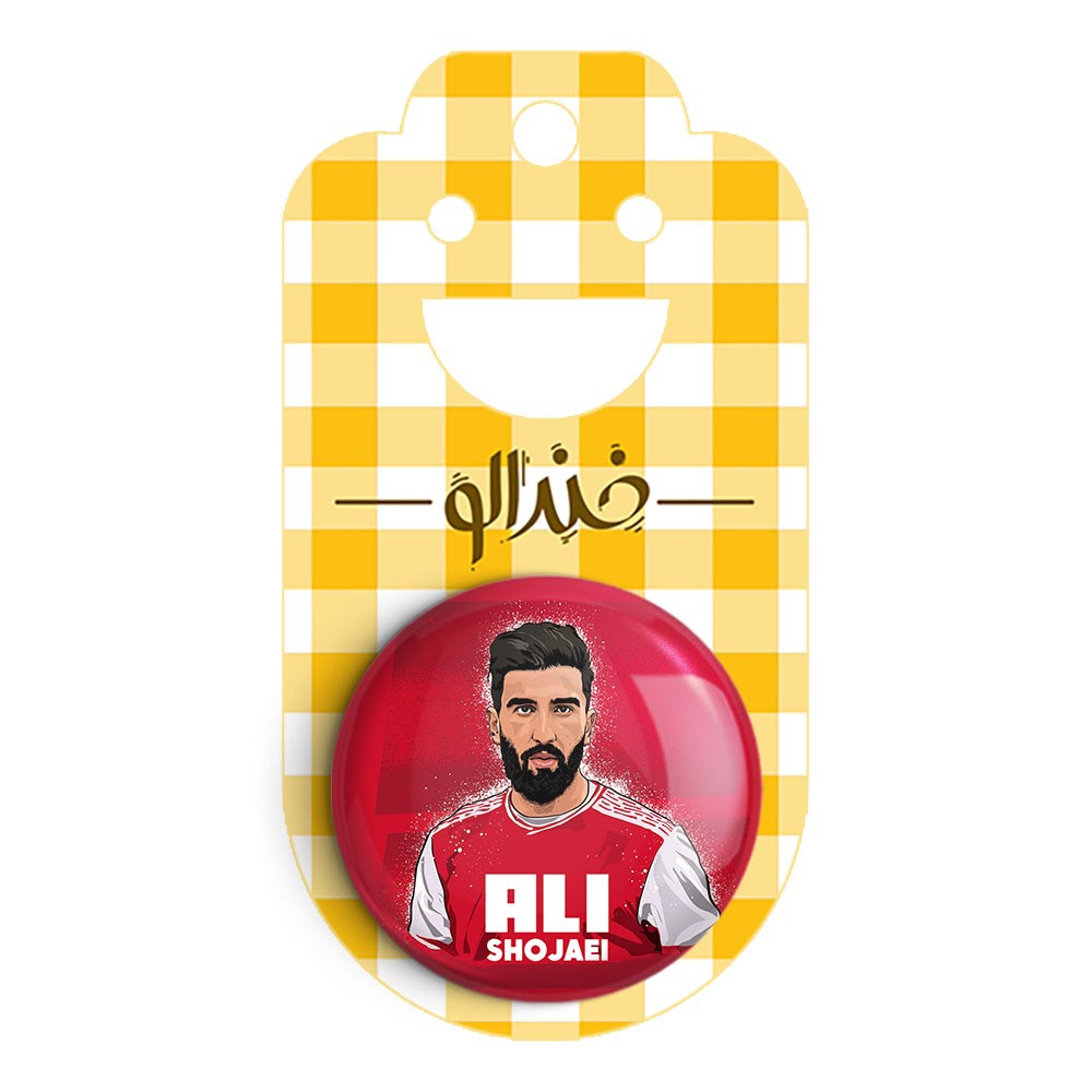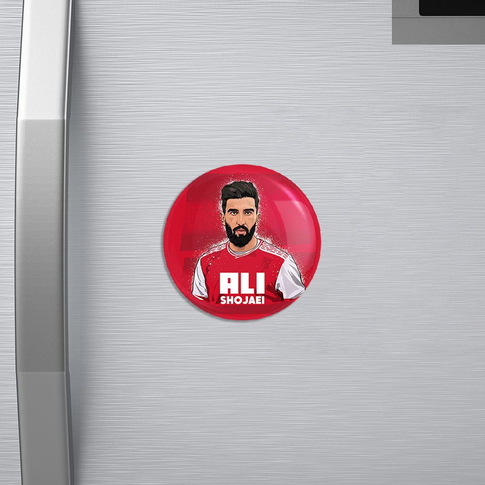 مگنت علی شجاعی پرسپولیس خندالو با روکش سلفون مات مخملی ضدخش و قطعه پشتی فلزی تولید شده است که آهنربای اتمی بکار برده شده در محصول، بصورت مخفی تعبیه شده ودیده نمی شود. ضمن اینکه گیرایی بسیار بالایی داشته و به هیچ عنوان از روی یخچال نمی افتد.
