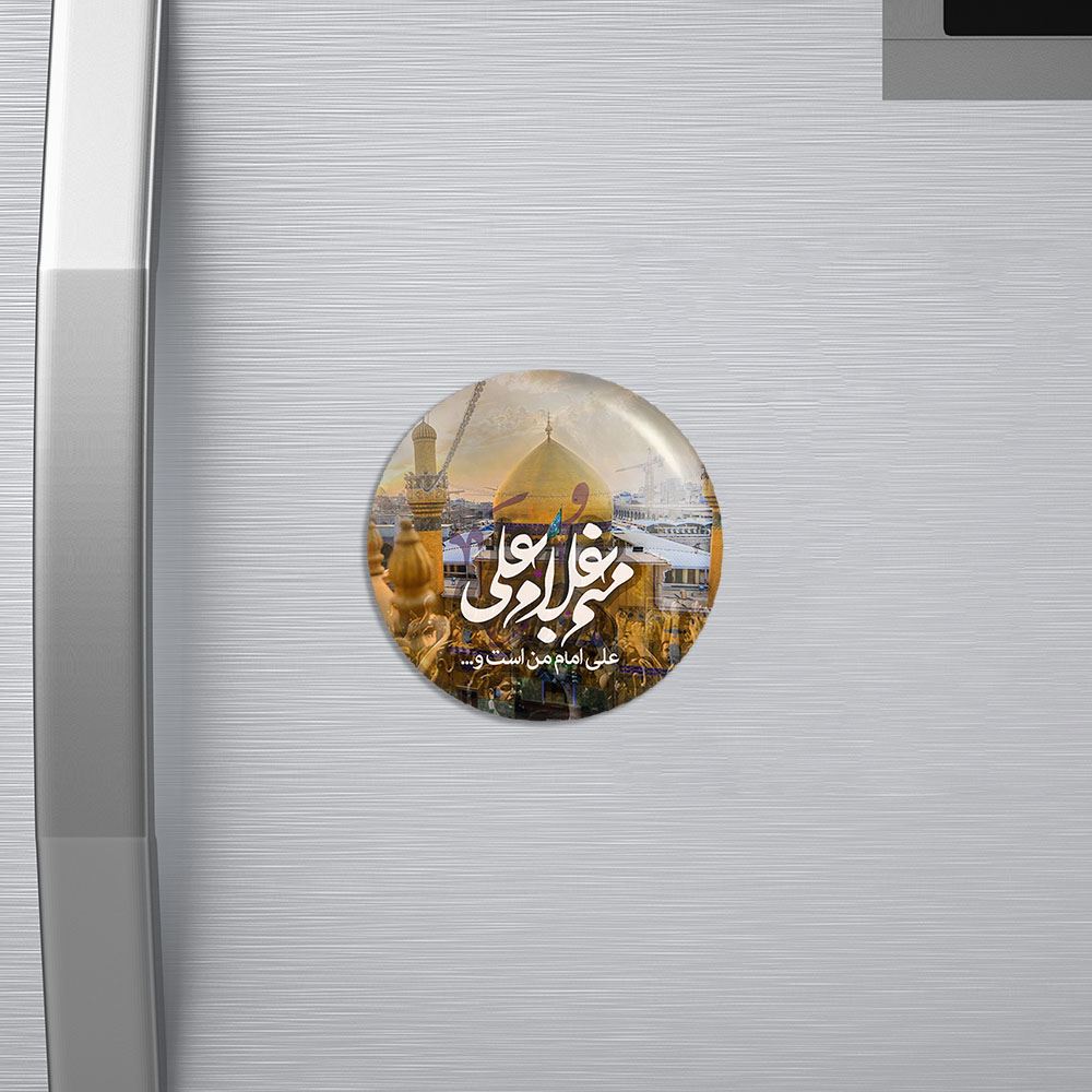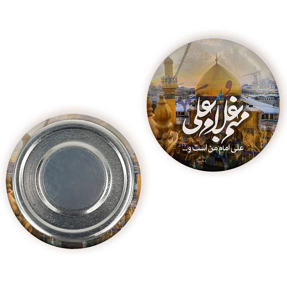 مگنت عید غدیر خندالو با روکش سلفون مات مخملی ضدخش و قطعه پشتی فلزی تولید شده است که آهنربای اتمی بکار برده شده در محصول، بصورت مخفی تعبیه شده ودیده نمی شود. ضمن اینکه گیرایی بسیار بالایی داشته و به هیچ عنوان از روی یخچال نمی افتد.