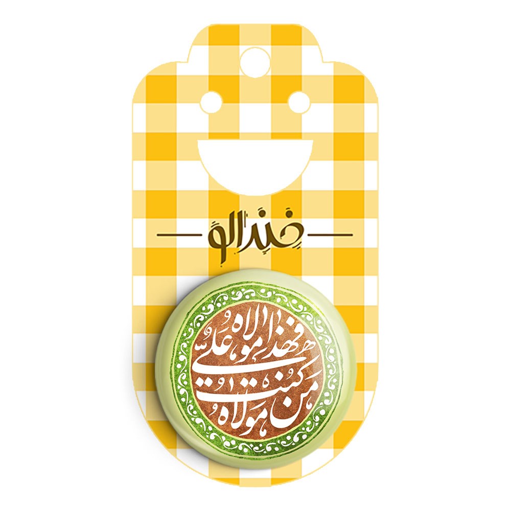 مگنت عید غدیر خندالو با روکش سلفون مات مخملی ضدخش و قطعه پشتی فلزی تولید شده است که آهنربای اتمی بکار برده شده در محصول، بصورت مخفی تعبیه شده ودیده نمی شود. ضمن اینکه گیرایی بسیار بالایی داشته و به هیچ عنوان از روی یخچال نمی افتد.