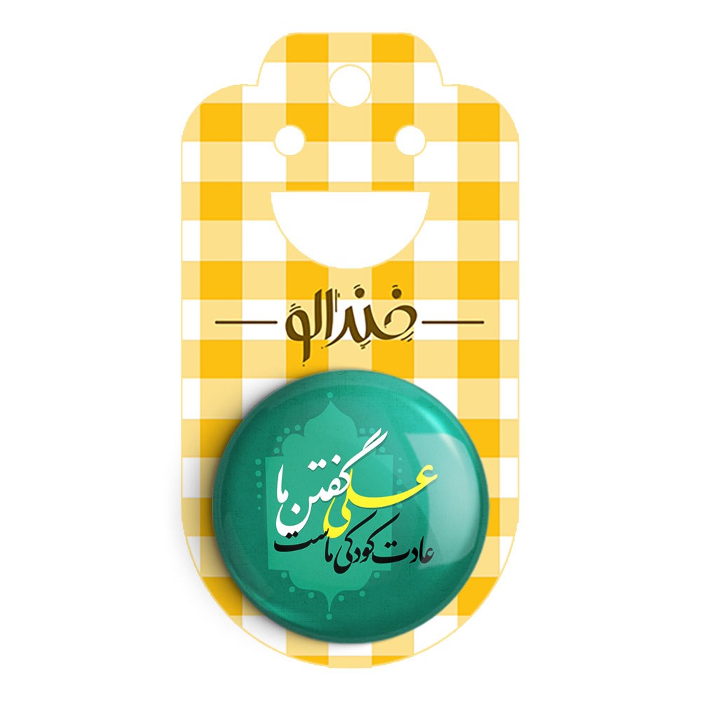 مگنت عید غدیر خندالو با روکش سلفون مات مخملی ضدخش و قطعه پشتی فلزی تولید شده است که آهنربای اتمی بکار برده شده در محصول، بصورت مخفی تعبیه شده ودیده نمی شود. ضمن اینکه گیرایی بسیار بالایی داشته و به هیچ عنوان از روی یخچال نمی افتد.