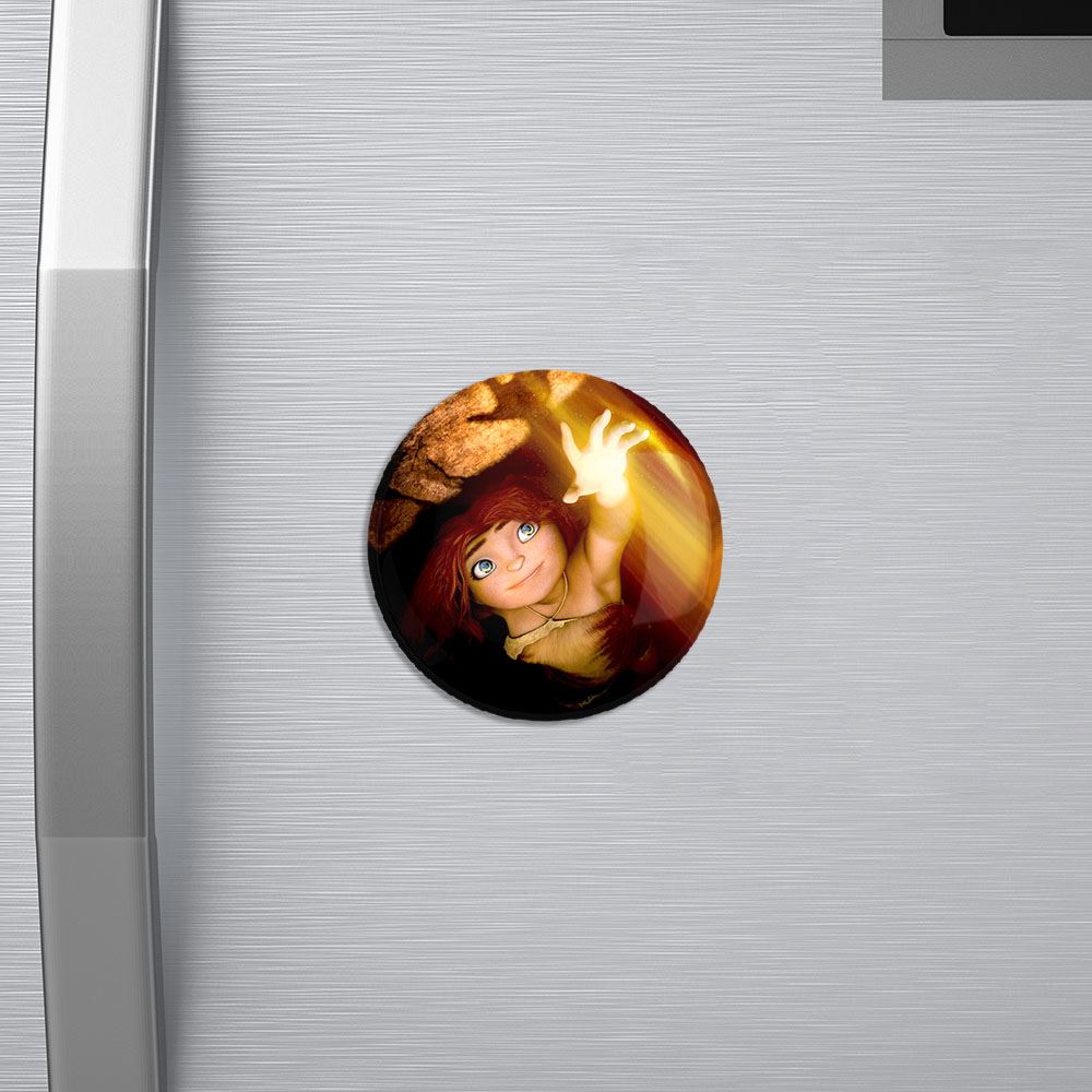 مگنت غارنشینان عصر جدید خندالو با روکش سلفون مات مخملی ضدخش و قطعه پشتی فلزی تولید شده است که آهنربای اتمی بکار برده شده در محصول، بصورت مخفی تعبیه شده ودیده نمی شود. ضمن اینکه گیرایی بسیار بالایی داشته و به هیچ عنوان از روی یخچال نمی افتد.