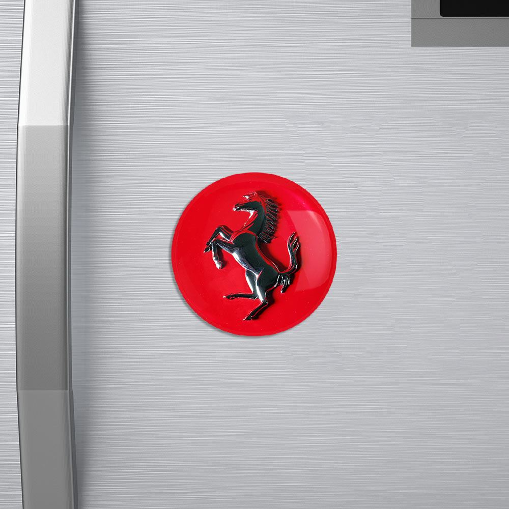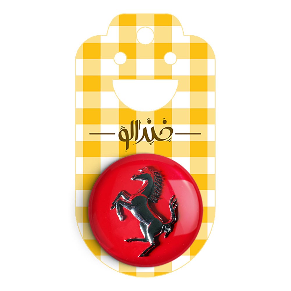 مگنت فراری Ferrari خندالو با روکش سلفون مات مخملی ضدخش و قطعه پشتی فلزی تولید شده است که آهنربای اتمی بکار برده شده در محصول، بصورت مخفی تعبیه شده ودیده نمی شود. ضمن اینکه گیرایی بسیار بالایی داشته و به هیچ عنوان از روی یخچال نمی افتد.