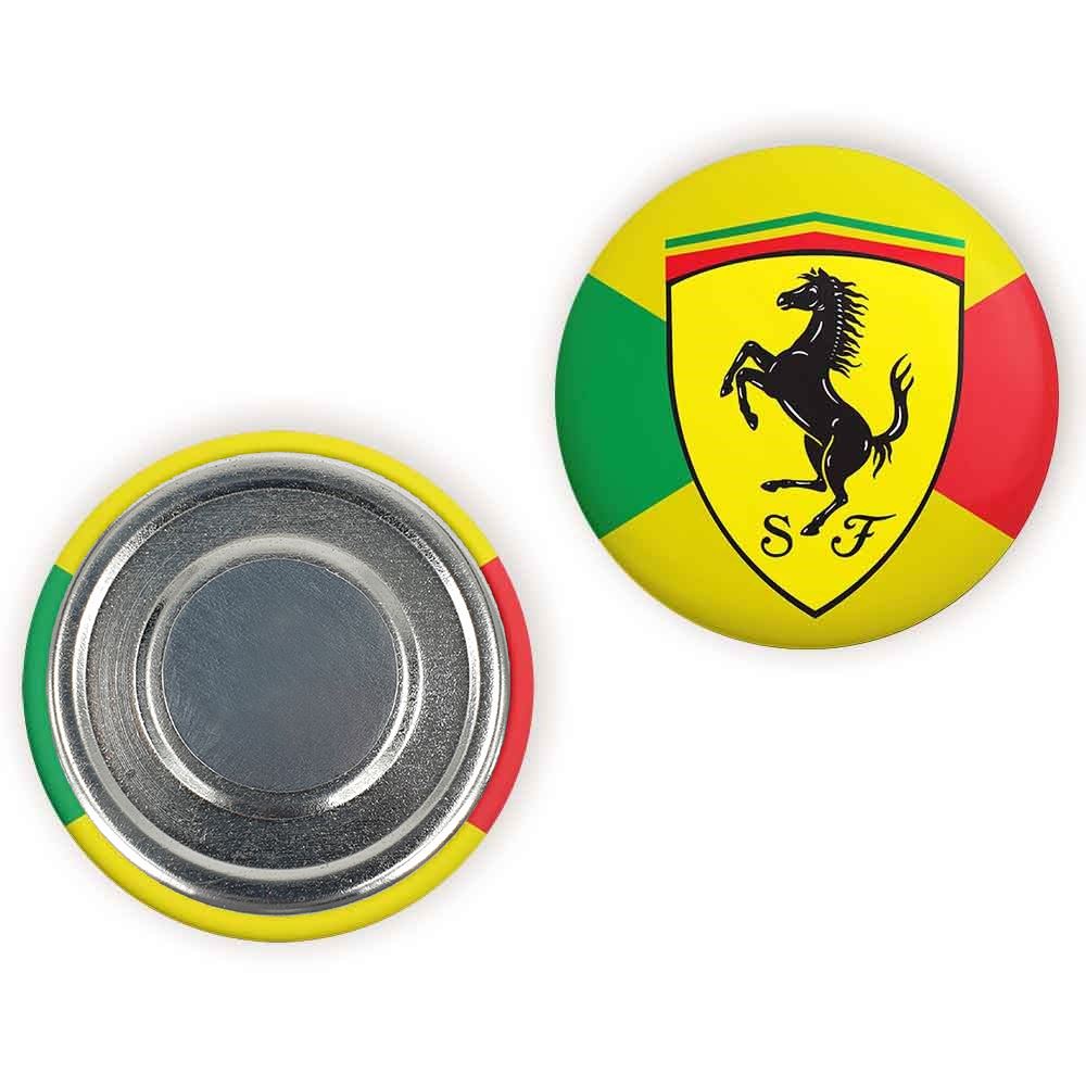 مگنت فراری Ferrari خندالو با روکش سلفون مات مخملی ضدخش و قطعه پشتی فلزی تولید شده است که آهنربای اتمی بکار برده شده در محصول، بصورت مخفی تعبیه شده ودیده نمی شود. ضمن اینکه گیرایی بسیار بالایی داشته و به هیچ عنوان از روی یخچال نمی افتد.