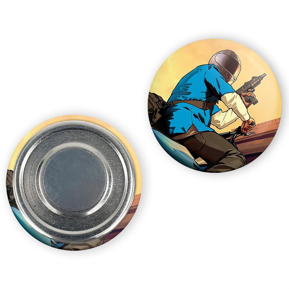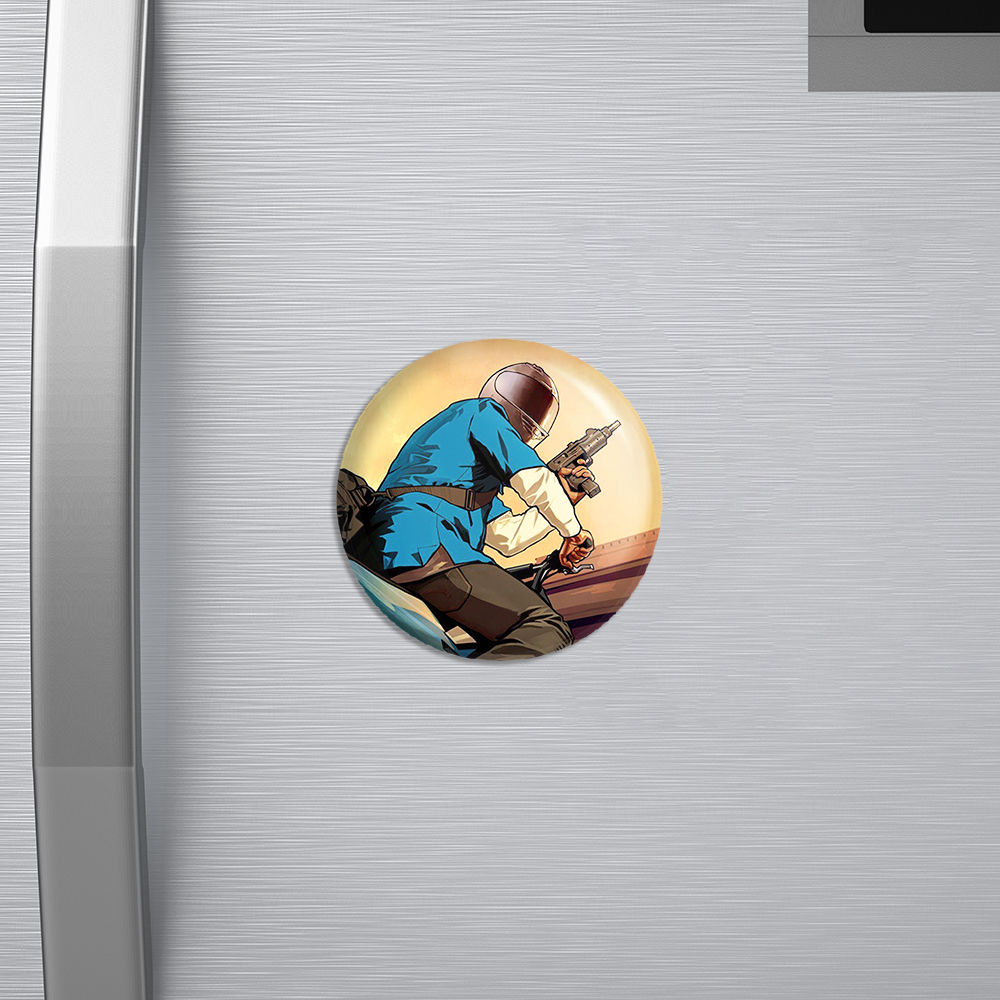 مگنت فرانکلین جی تی ای GTA خندالو با روکش سلفون مات مخملی ضدخش و قطعه پشتی فلزی تولید شده است که آهنربای اتمی بکار برده شده در محصول، بصورت مخفی تعبیه شده ودیده نمی شود. ضمن اینکه گیرایی بسیار بالایی داشته و به هیچ عنوان از روی یخچال نمی افتد. نکته مهم این است که به دلیل مخفی بودن آهنربا، هیچگونه خط و خش و زدگی بر روی یخچال ایجاد نخواهد شد. چاپ مگنت یخچال فرانکلین جی تی ای GTA نیز با دستگاه های استاندارد و با بهترین سطح کیفیت صورت گرفته و طرح با شفافیتی مثال زدنی و با سلفون چسبی تولید شده است که باعث شده محصول نهایی بدون شکست نور دیده شود. همچنین بسته بندی جذاب و مینیمال مگنت های یخچالی، آنها را مناسب هدیه کرده است. مگنت فرانکلین جی تی ای GTA خندالو علاوه بر روی یخچال بر هر سطح فلزی دیگری مثل لولای در اتاق، کمد های آهنی و … نیز قابل نصب است.