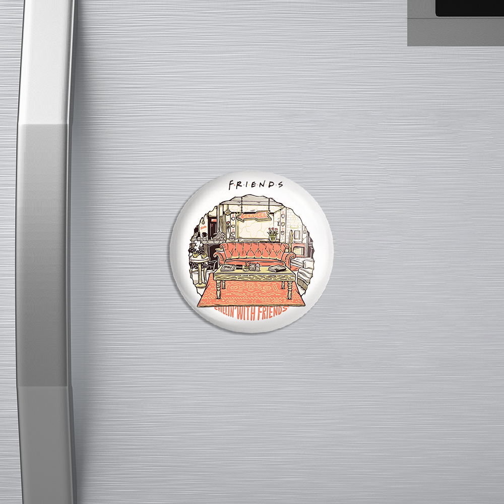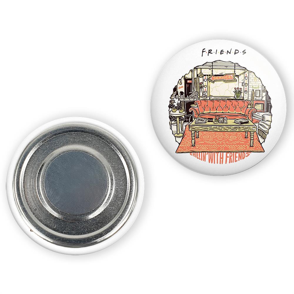 مگنت فرندز Friends خندالو با روکش سلفون مات مخملی ضدخش و قطعه پشتی فلزی تولید شده است که آهنربای اتمی بکار برده شده در محصول، بصورت مخفی تعبیه شده ودیده نمی شود. ضمن اینکه گیرایی بسیار بالایی داشته و به هیچ عنوان از روی یخچال نمی افتد.