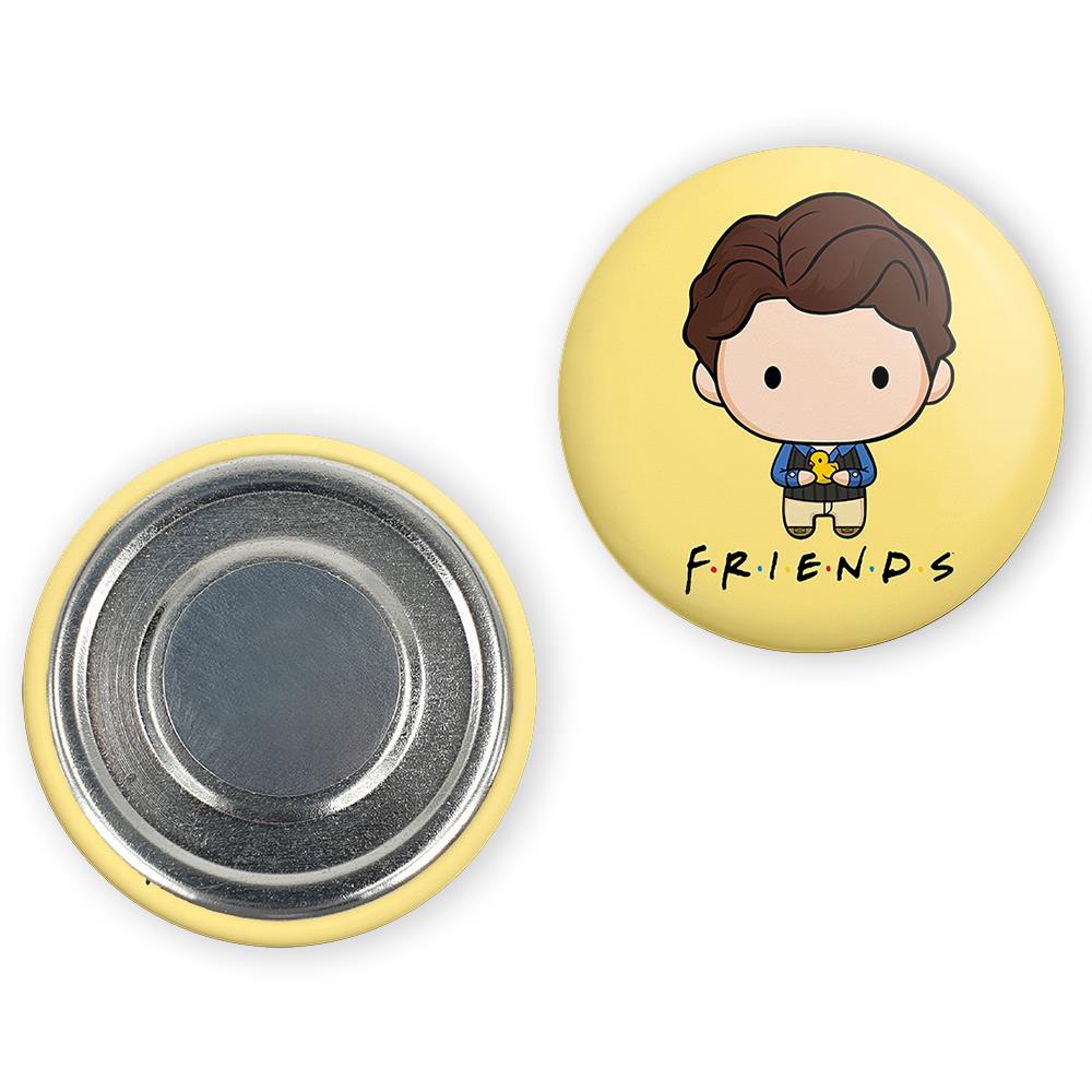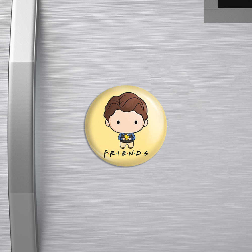 مگنت فرندز Friends خندالو با روکش سلفون مات مخملی ضدخش و قطعه پشتی فلزی تولید شده است که آهنربای اتمی بکار برده شده در محصول، بصورت مخفی تعبیه شده ودیده نمی شود. ضمن اینکه گیرایی بسیار بالایی داشته و به هیچ عنوان از روی یخچال نمی افتد.