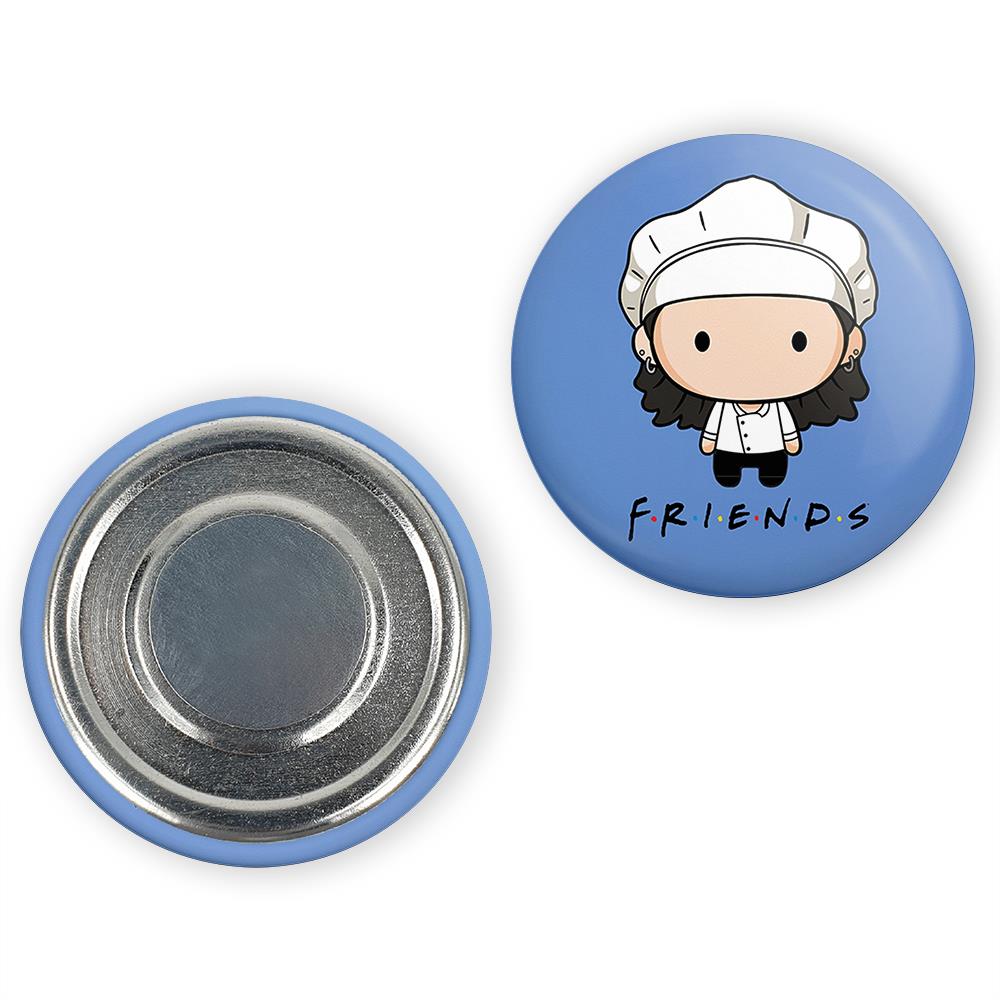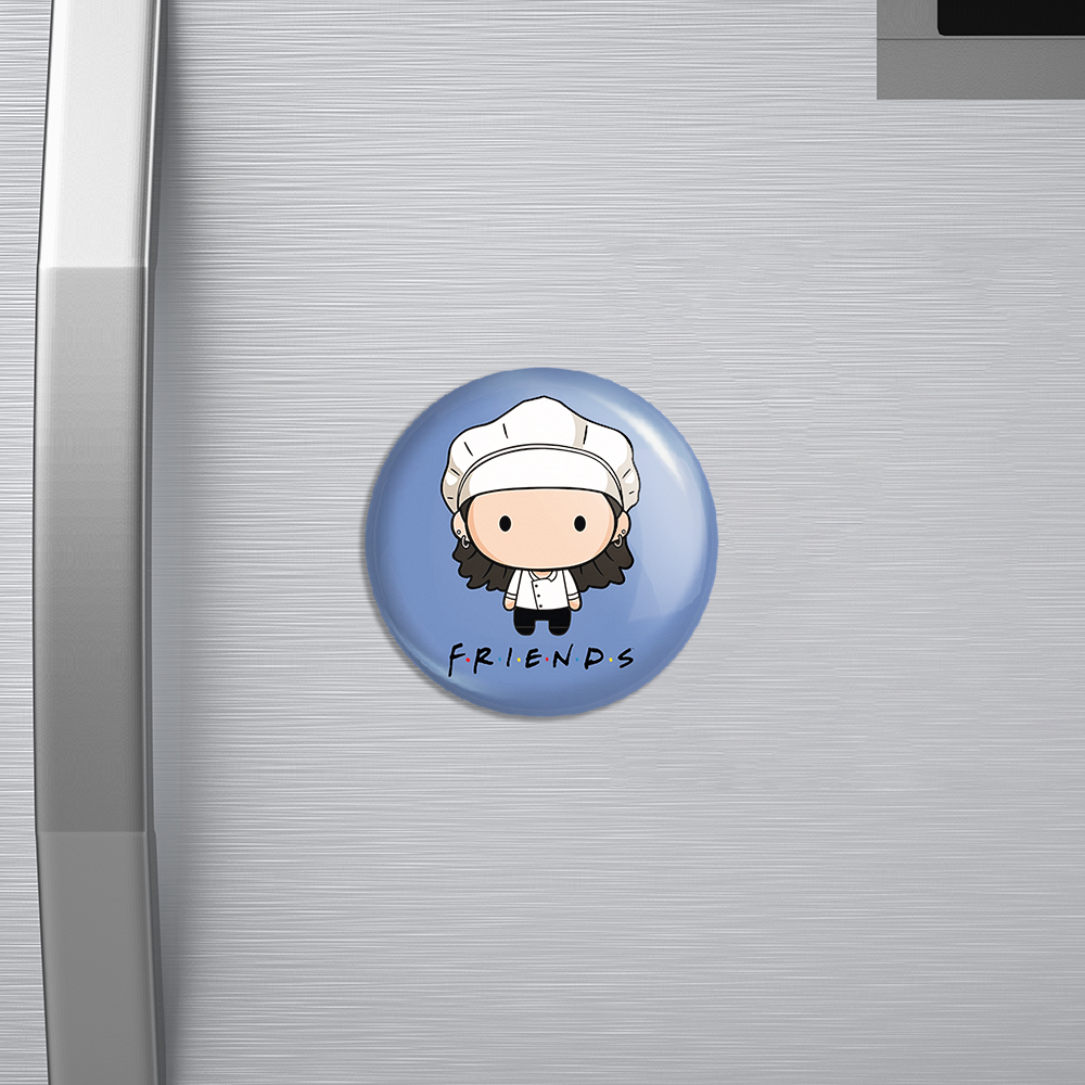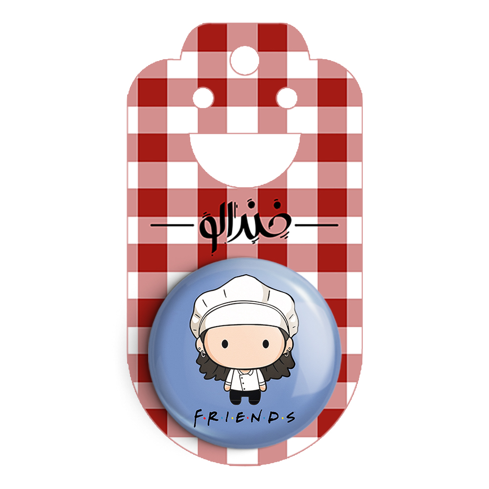 مگنت فرندز Friends خندالو با روکش سلفون مات مخملی ضدخش و قطعه پشتی فلزی تولید شده است که آهنربای اتمی بکار برده شده در محصول، بصورت مخفی تعبیه شده ودیده نمی شود. ضمن اینکه گیرایی بسیار بالایی داشته و به هیچ عنوان از روی یخچال نمی افتد.