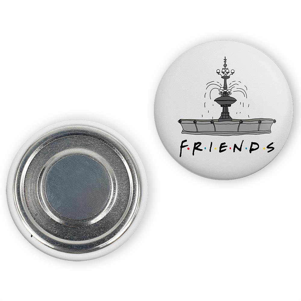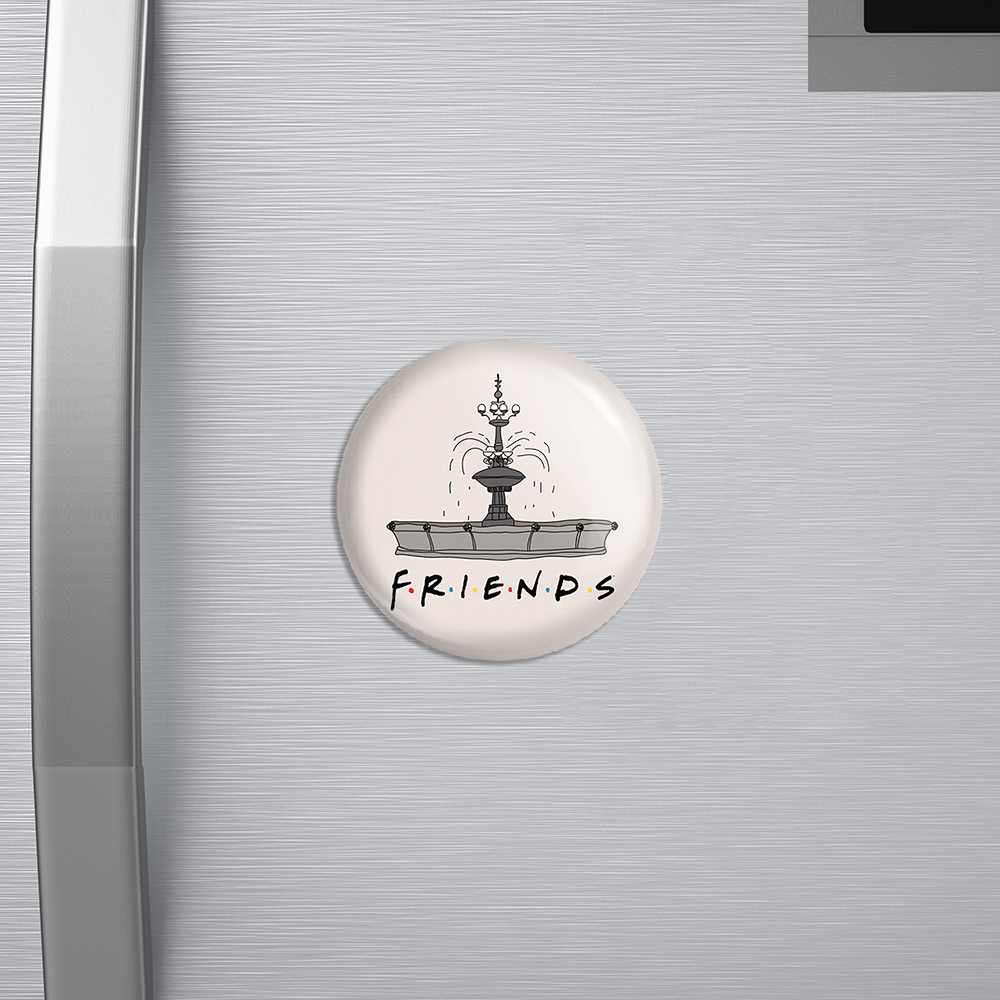مگنت فرندز Friends خندالو با روکش سلفون مات مخملی ضدخش و قطعه پشتی فلزی تولید شده است که آهنربای اتمی بکار برده شده در محصول، بصورت مخفی تعبیه شده ودیده نمی شود. ضمن اینکه گیرایی بسیار بالایی داشته و به هیچ عنوان از روی یخچال نمی افتد.