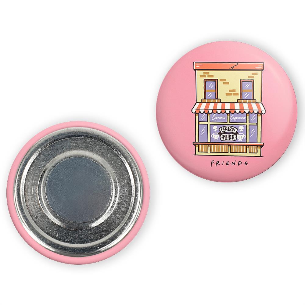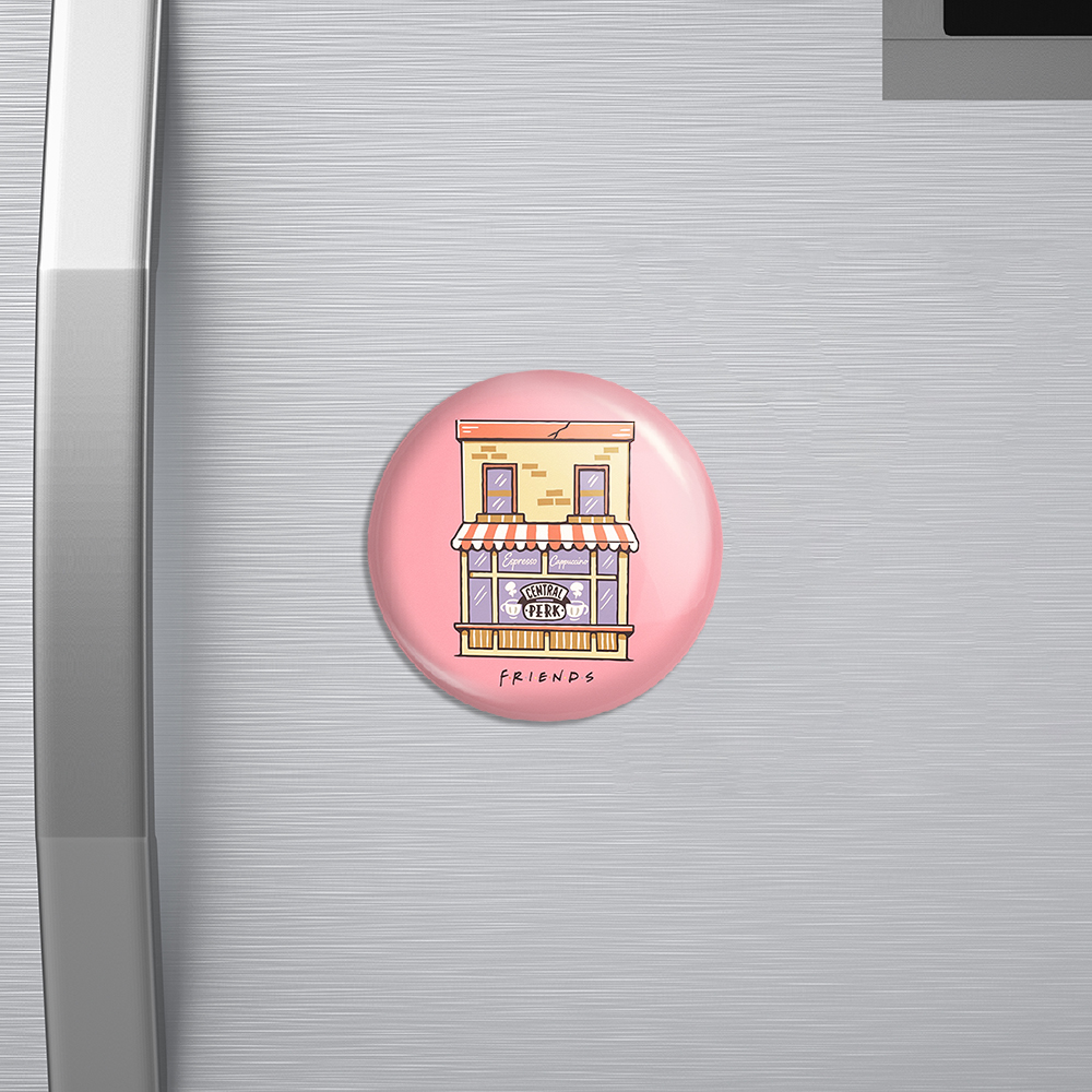 مگنت فرندز Friends خندالو با روکش سلفون مات مخملی ضدخش و قطعه پشتی فلزی تولید شده است که آهنربای اتمی بکار برده شده در محصول، بصورت مخفی تعبیه شده ودیده نمی شود. ضمن اینکه گیرایی بسیار بالایی داشته و به هیچ عنوان از روی یخچال نمی افتد.