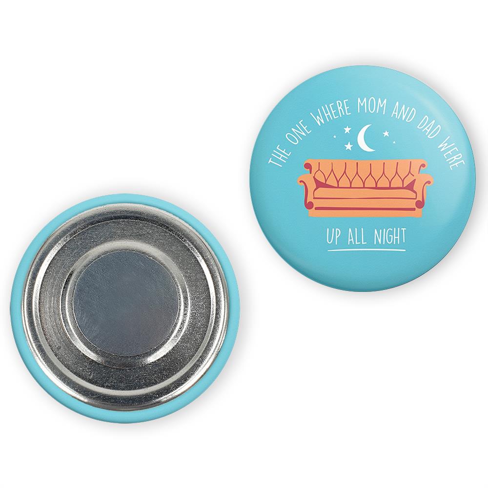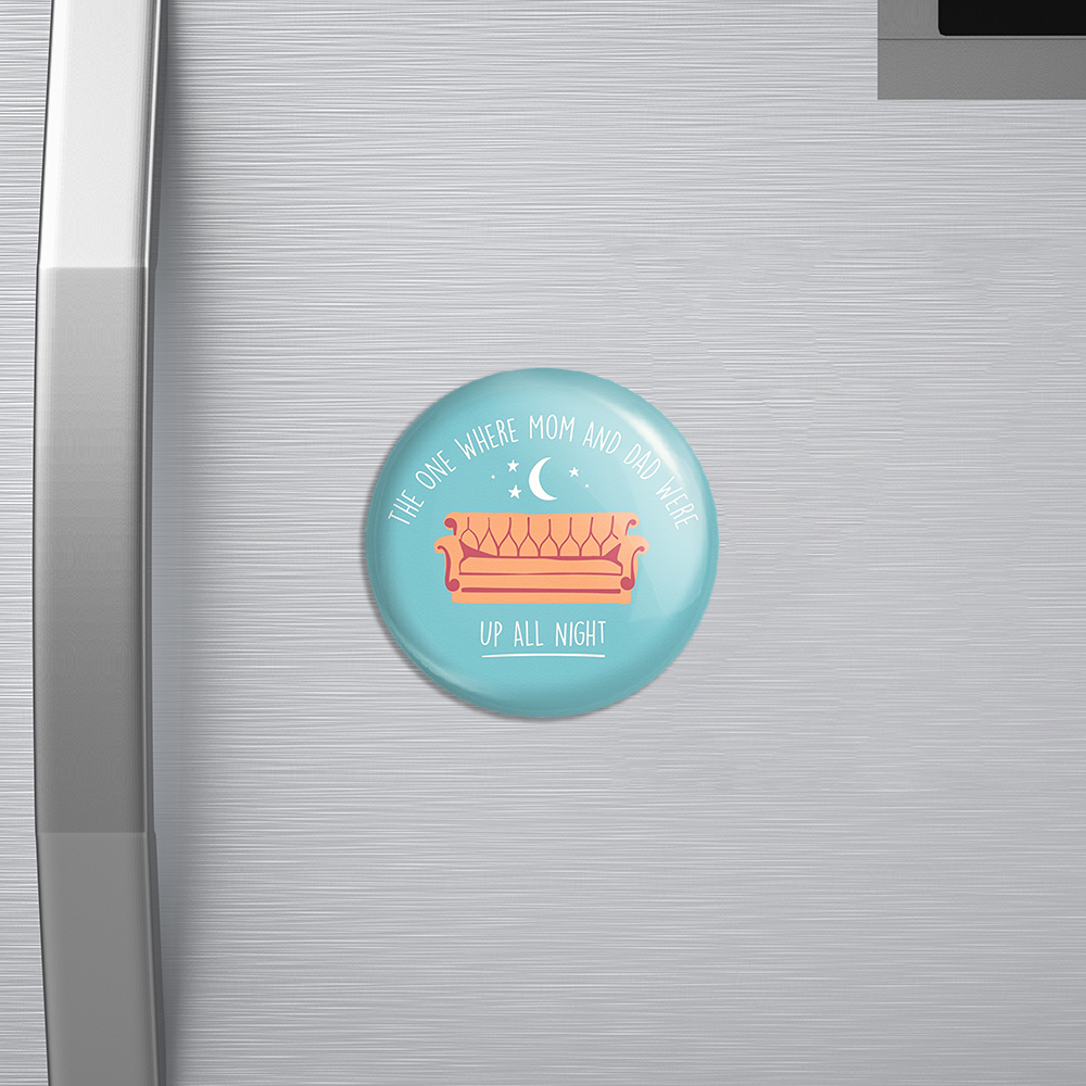 مگنت فرندز Friends خندالو با روکش سلفون مات مخملی ضدخش و قطعه پشتی فلزی تولید شده است که آهنربای اتمی بکار برده شده در محصول، بصورت مخفی تعبیه شده ودیده نمی شود. ضمن اینکه گیرایی بسیار بالایی داشته و به هیچ عنوان از روی یخچال نمی افتد.