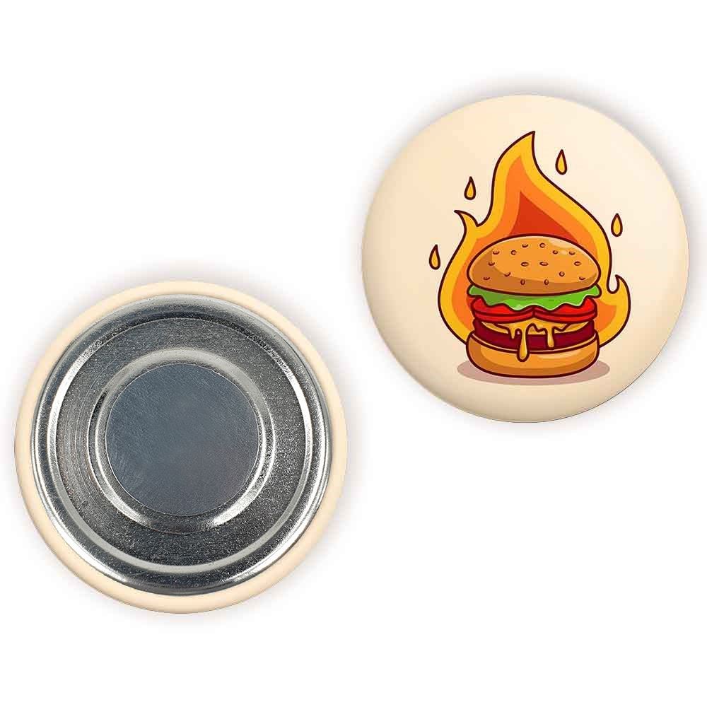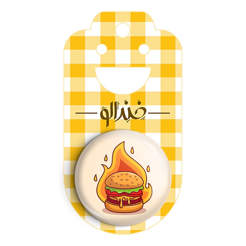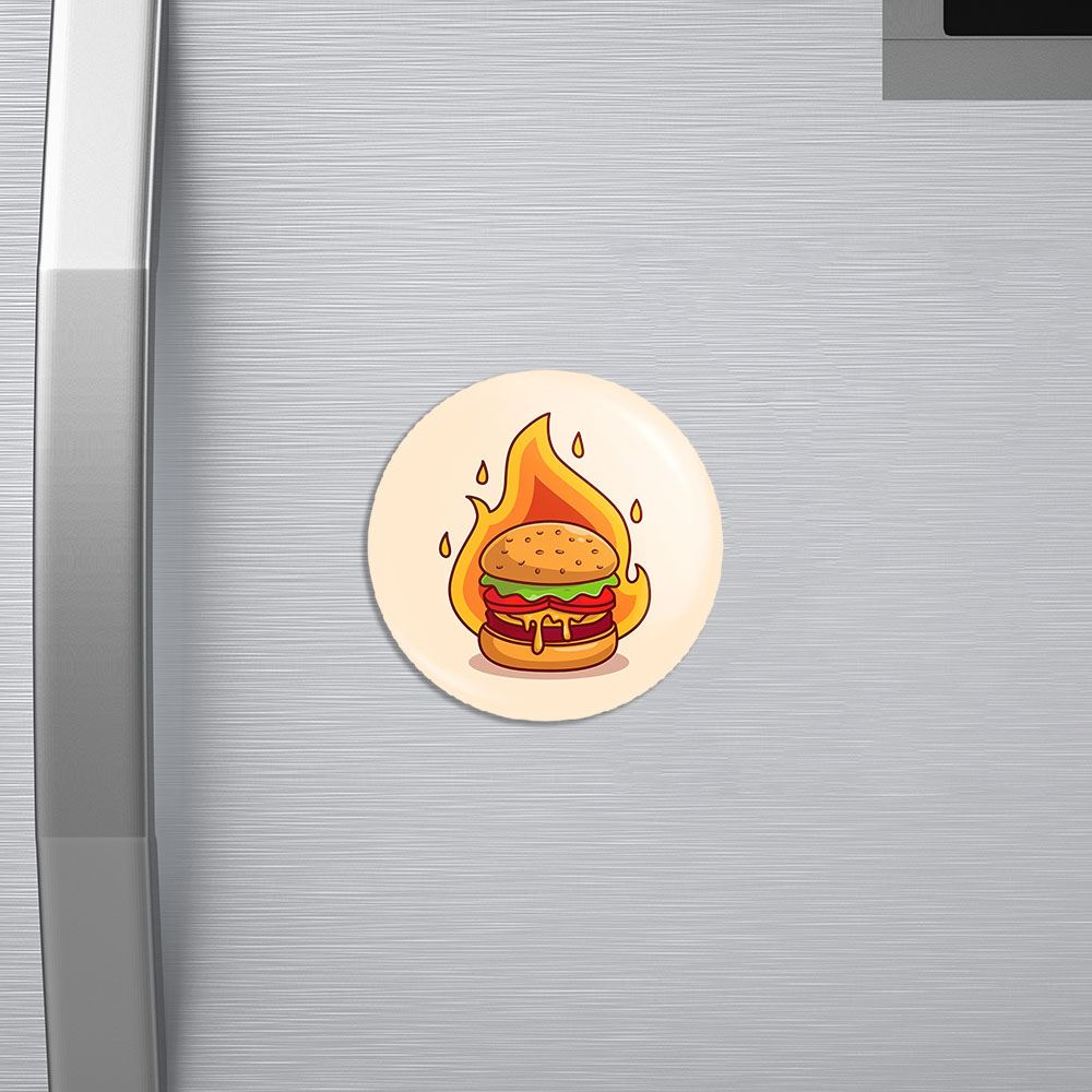 مگنت فست فود برگر خندالو با روکش سلفون مات مخملی ضدخش و قطعه پشتی فلزی تولید شده است که آهنربای اتمی بکار برده شده در محصول، بصورت مخفی تعبیه شده ودیده نمی شود. ضمن اینکه گیرایی بسیار بالایی داشته و به هیچ عنوان از روی یخچال نمی افتد.