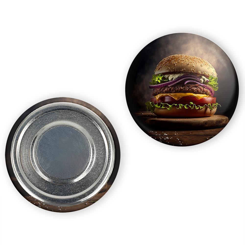 مگنت فست فود خندالو با روکش سلفون مات مخملی ضدخش و قطعه پشتی فلزی تولید شده است که آهنربای اتمی بکار برده شده در محصول، بصورت مخفی تعبیه شده ودیده نمی شود. ضمن اینکه گیرایی بسیار بالایی داشته و به هیچ عنوان از روی یخچال نمی افتد.