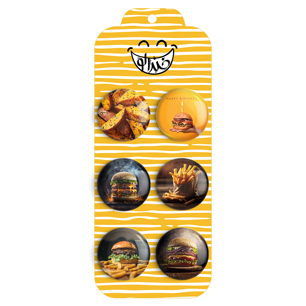 پک 6 عددی مگنت یخچال خندالو طرح فست فود (Fast Food) با روکش سلفون مات حرارتی مخملی ضدخش و قطعه پشتی فلزی تولید شده است که آهنربای اتمی بکار برده شده در محصول، بصورت مخفی تعبیه شده ودیده نمی شود. ضمن اینکه گیرایی بسیار بالایی داشته و به هیچ عنوان از روی یخچال نمی افتد. نکته مهم این است که به دلیل مخفی بودن آهنربا، هیچگونه خط و خش و زدگی بر روی یخچال ایجاد نخواهد شد.