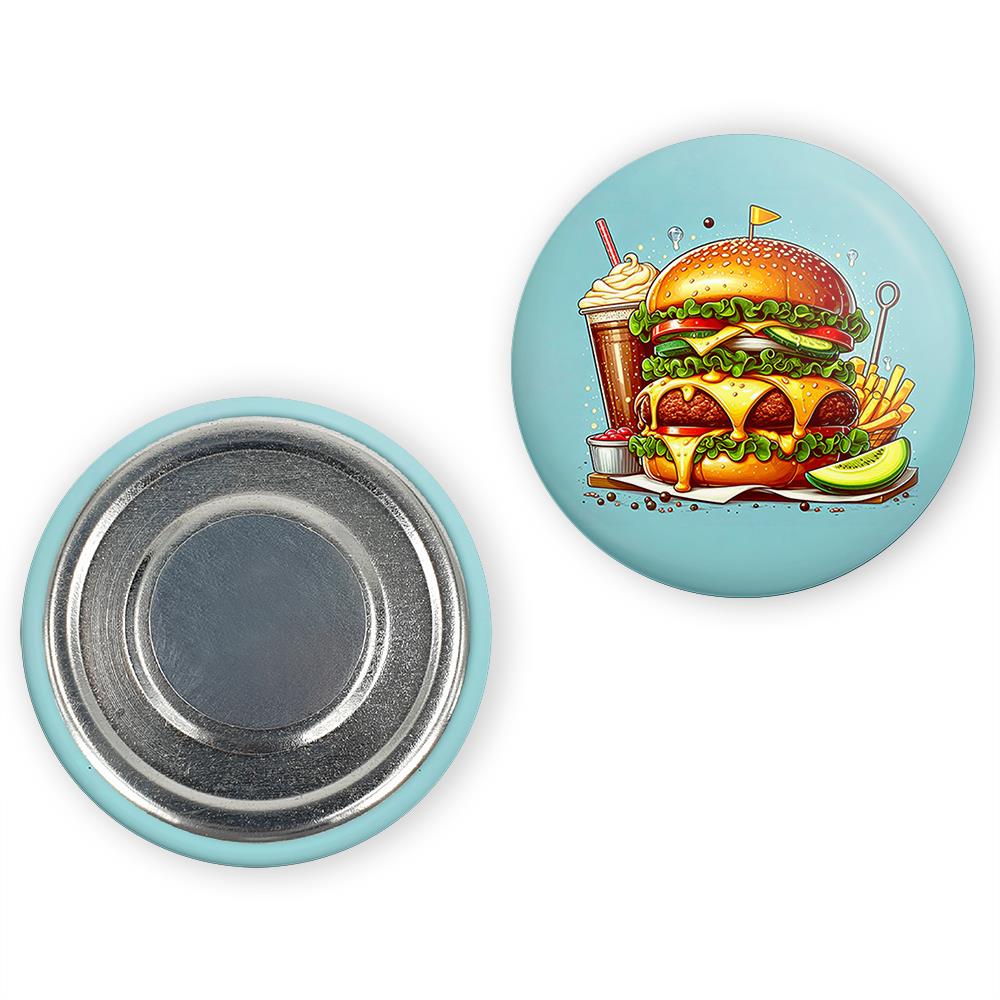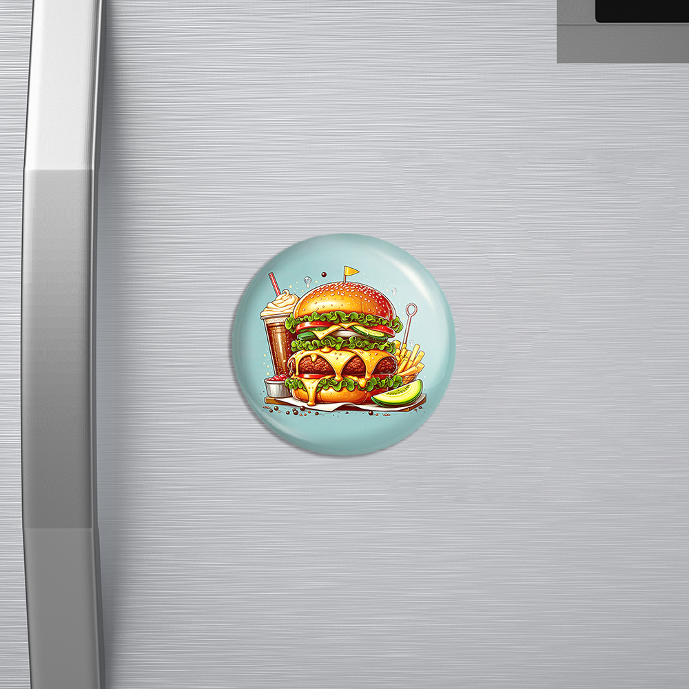 مگنت فست فود (Fast Food) خندالو با روکش سلفون مات مخملی ضدخش و قطعه پشتی فلزی تولید شده است که آهنربای اتمی بکار برده شده در محصول، بصورت مخفی تعبیه شده ودیده نمی شود. ضمن اینکه گیرایی بسیار بالایی داشته و به هیچ عنوان از روی یخچال نمی افتد.